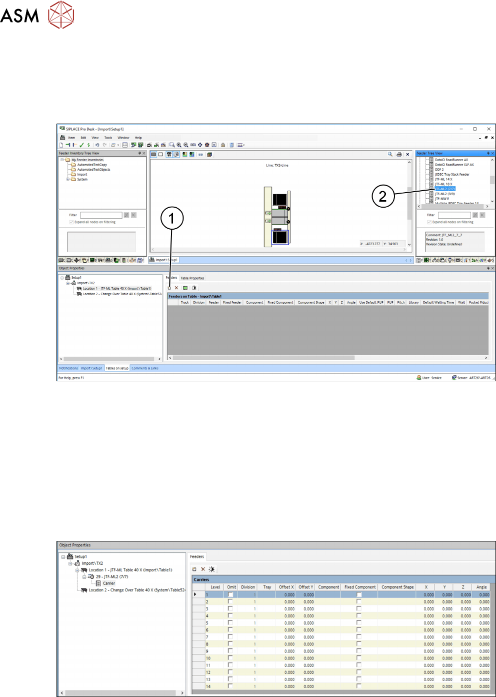 4 设置与调试 4.3 JEDEC 盘式供料器在 SIPLACE Pro 中的配置 68 用户手册 SIPLACE TX V1/V2 Series JEDEC Tray Feeder (JTF-ML2) 11/2019 4.3.5.3 JEDEC 盘式供料器在料台上的配置 有两种方式可以将 JEDEC 盘式供料器安装到料台上: ● 将 JEDEC 盘式供料器手动拖动到料台 (2) 上。 ● 选择 Insert a new item in…