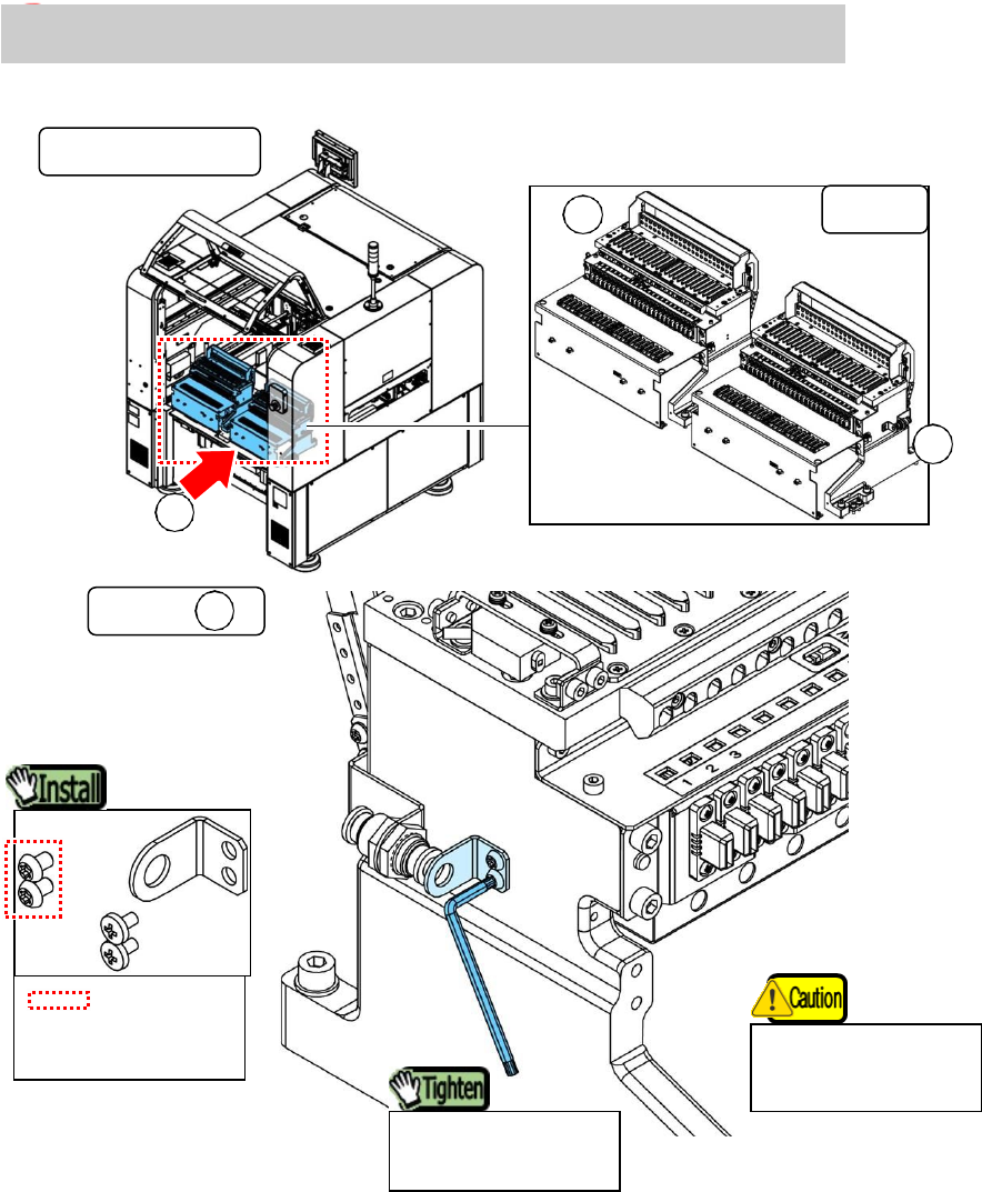 用于 服务 工程师 服务 信息 SI18020008E - 000 = Y SM10 后送料 库改造 程序 56/65 B a 银行 A 机器 后视图 第 3 步。 固定软 管支架 用于 20 号 ( M4 ) 的扭矩 请 勿拆下 " 3. 9" 中连 接 的空气 管。 2 个未 用于 " 3. 7" 的螺 栓。 示例: A