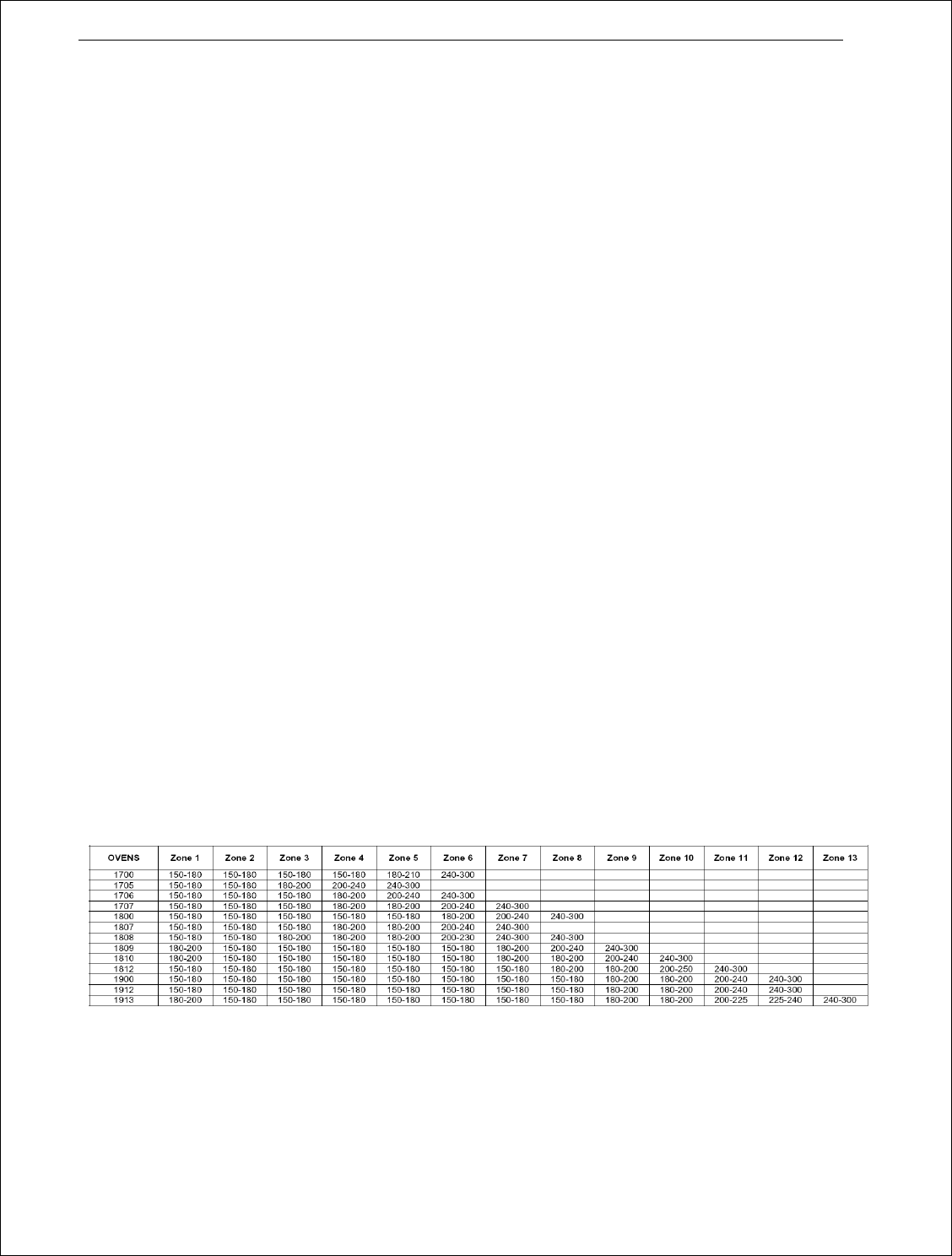 推荐的温度设定起始点(单位℃)如下表所示:
