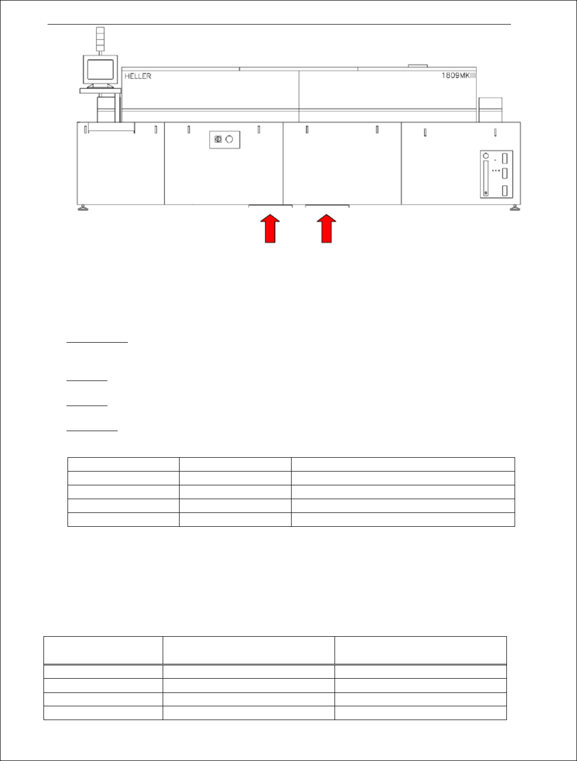 1A 所示为所有 Heller 回流炉型号所需的工作导体电流容量。安装场所需使用下表所述的额定安培