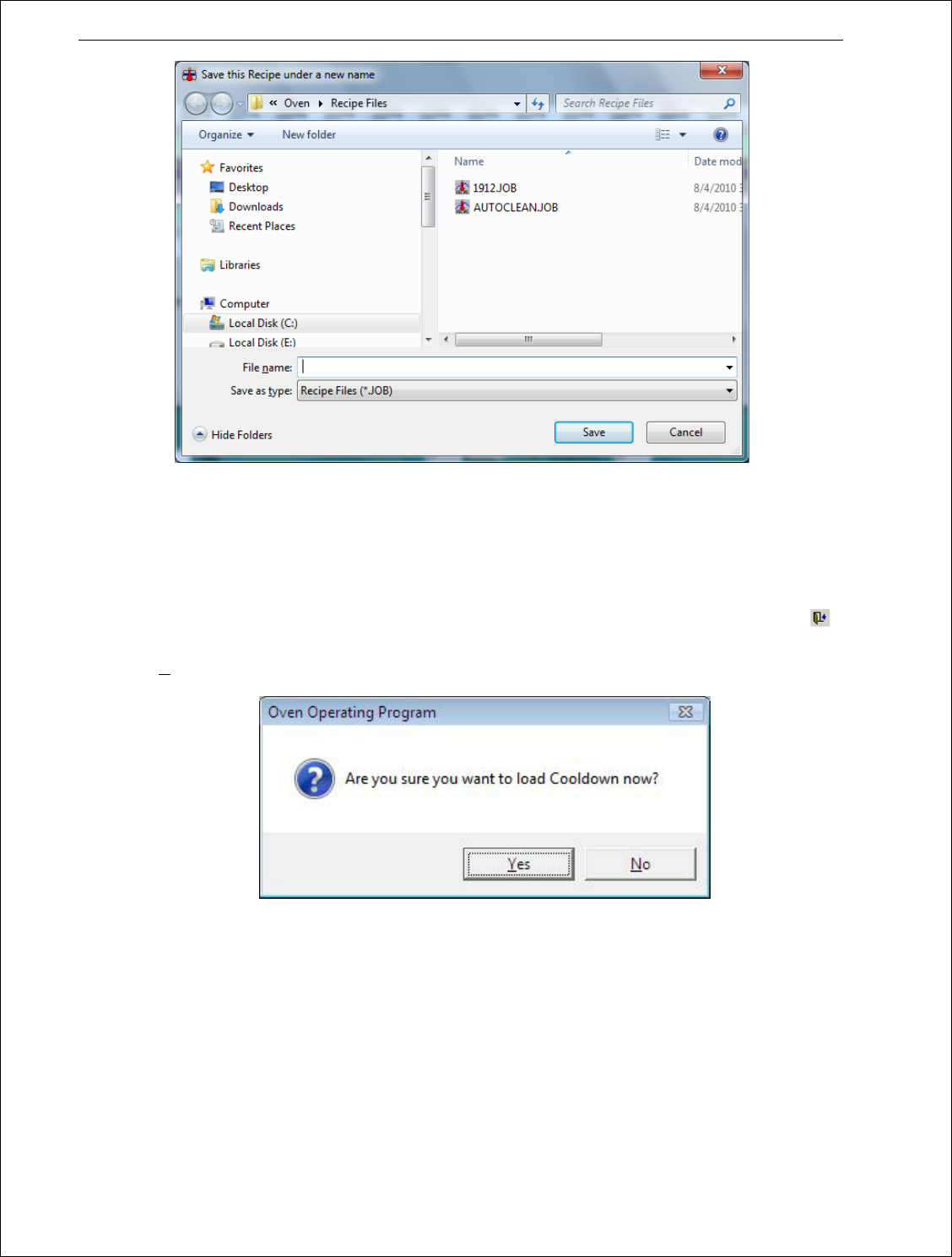 序,用户必须处于操作模式,用户无法从冷却模式的操作界面载入程序