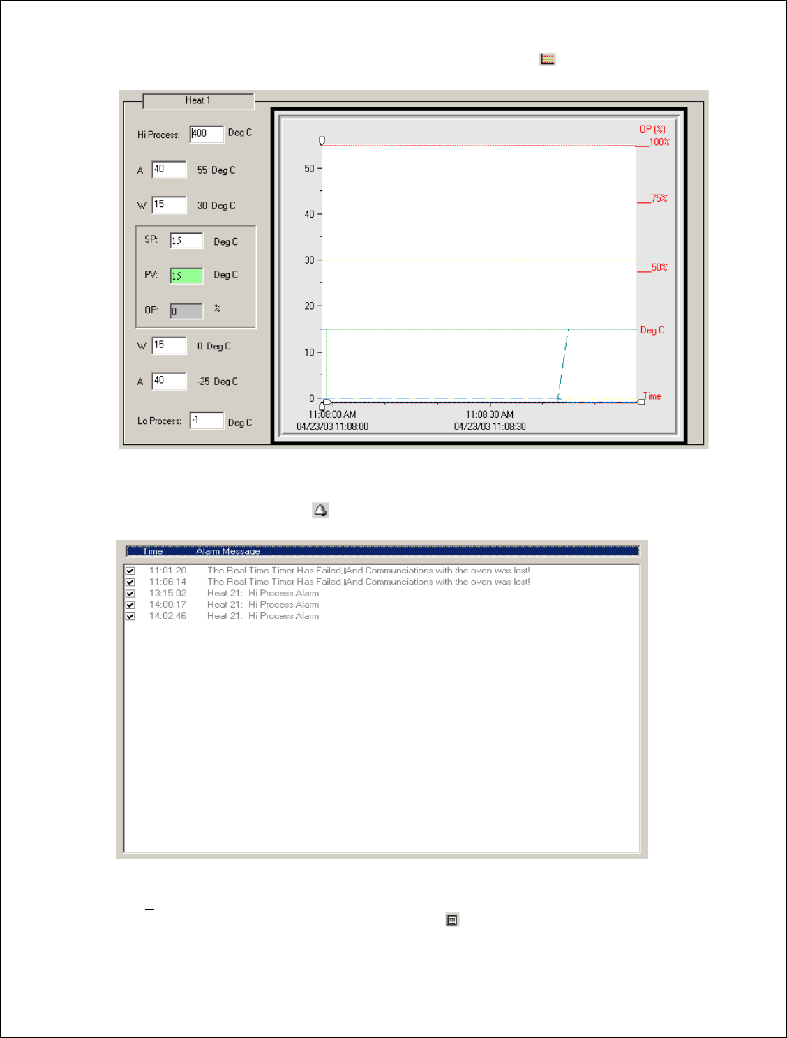 d、 报警(Alarm)屏幕显示出现的报警和警告列表。在每个报警或警告旁边有用于确认的复选框。