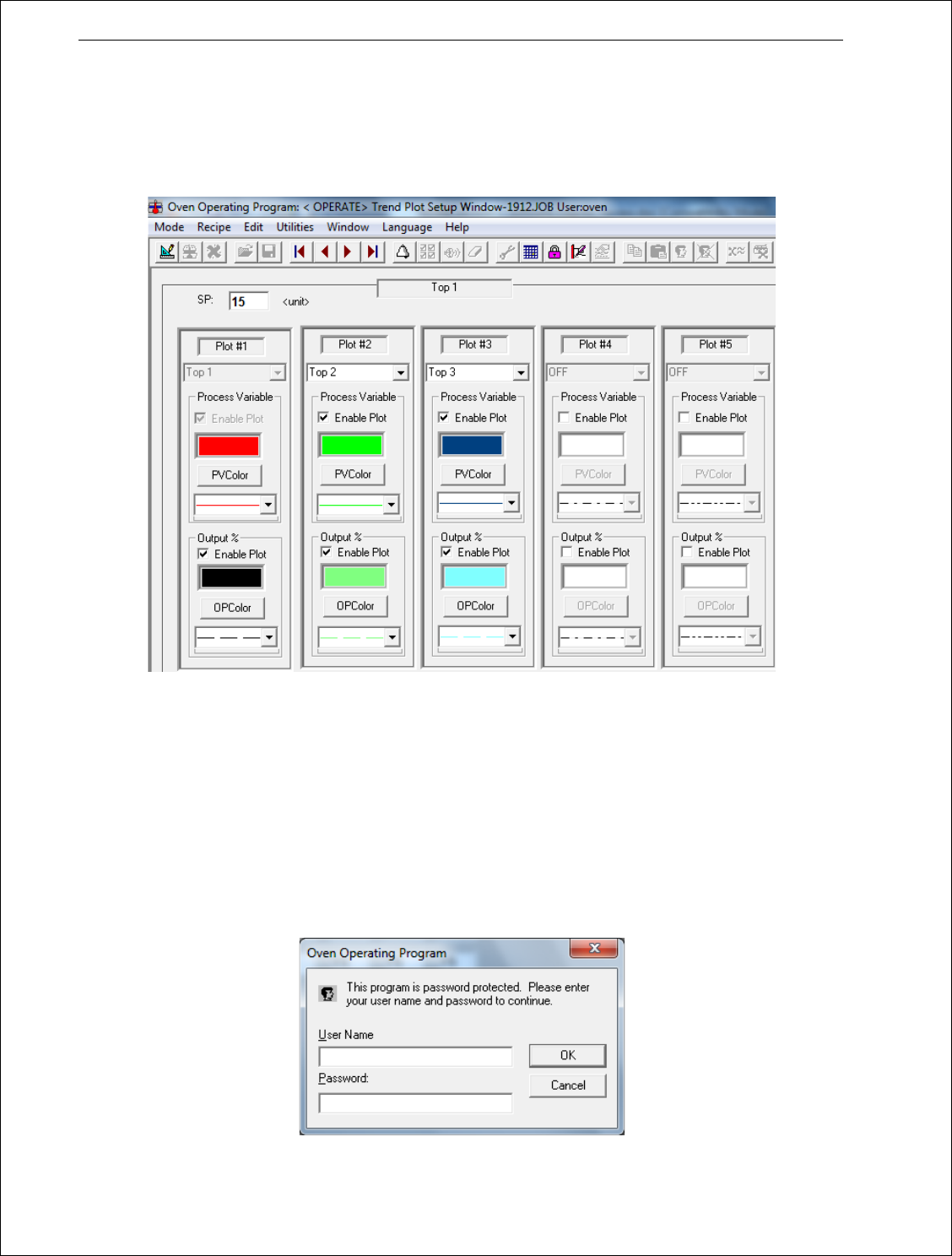 43 将记入当前日志数据 库文件。该数据也 用作控制区趋势图 屏幕和通道设置屏 幕中图形的历史数 据。 数据采集激活和默认间 隔为 5 分钟。数据采集 文件储存于 c : \ Ove n \ Journal Files 文件夹。 文件有两 种格式: *.J NL 和 *.T X T 。文件名中包含文 件创建时的 日期。 G. 控制区趋势图屏幕设置 图 42 每个控制区趋势图屏 幕可以包含最多 五个工艺变 量及其相应输出 比例的独立 图表…