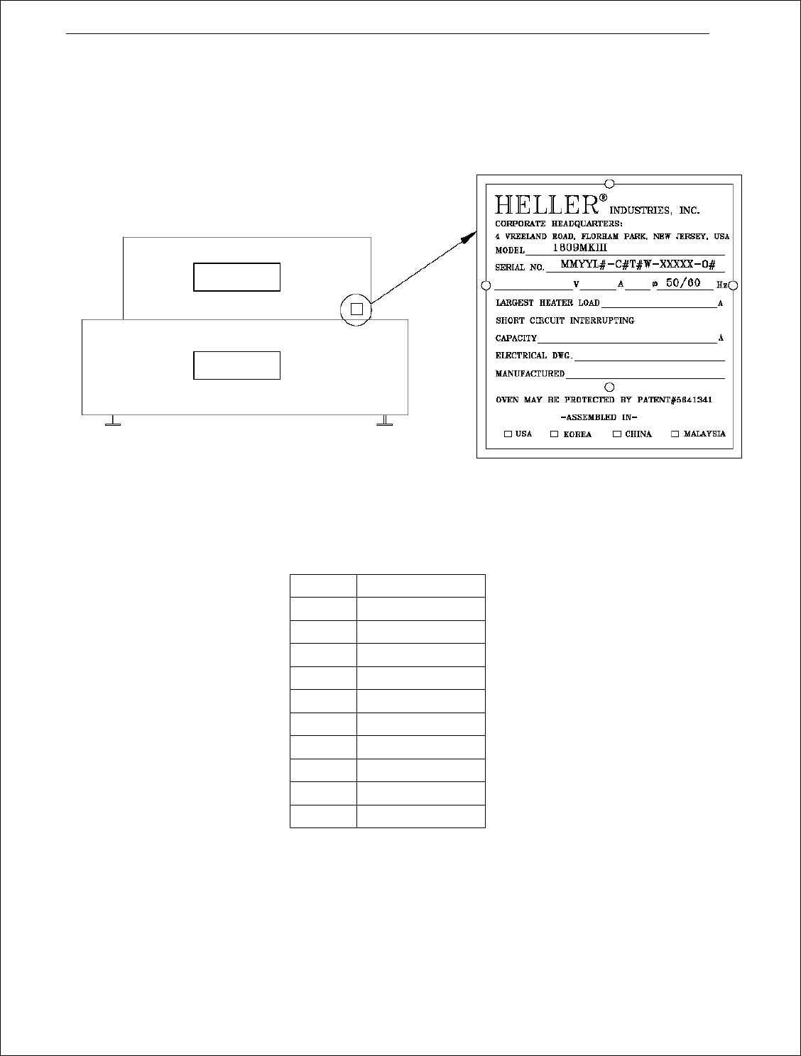 1. 序列号标牌位于顶盖的后部。标牌上列出了回流炉型号、电压和最大电流负载。另外,回流炉的多