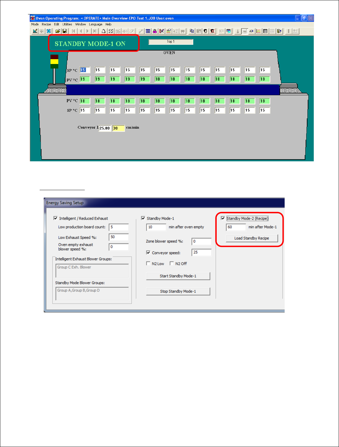 • “Standby Mode-2”可在计时器设定时间到达之前通过点击“Load Standby Recipe”按钮