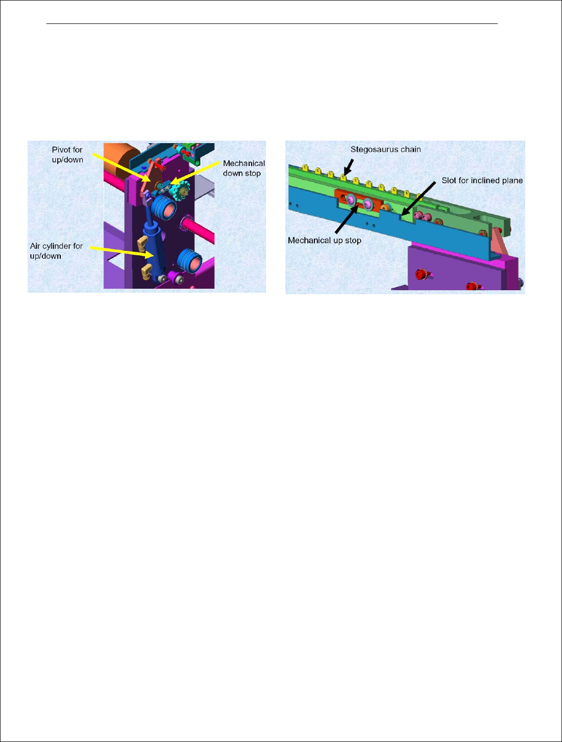 然后拧紧螺钉。确保中心板支撑链条高度比可调节轨道链条相差+0 至-0.08”(+0 至-0.20 厘米),这