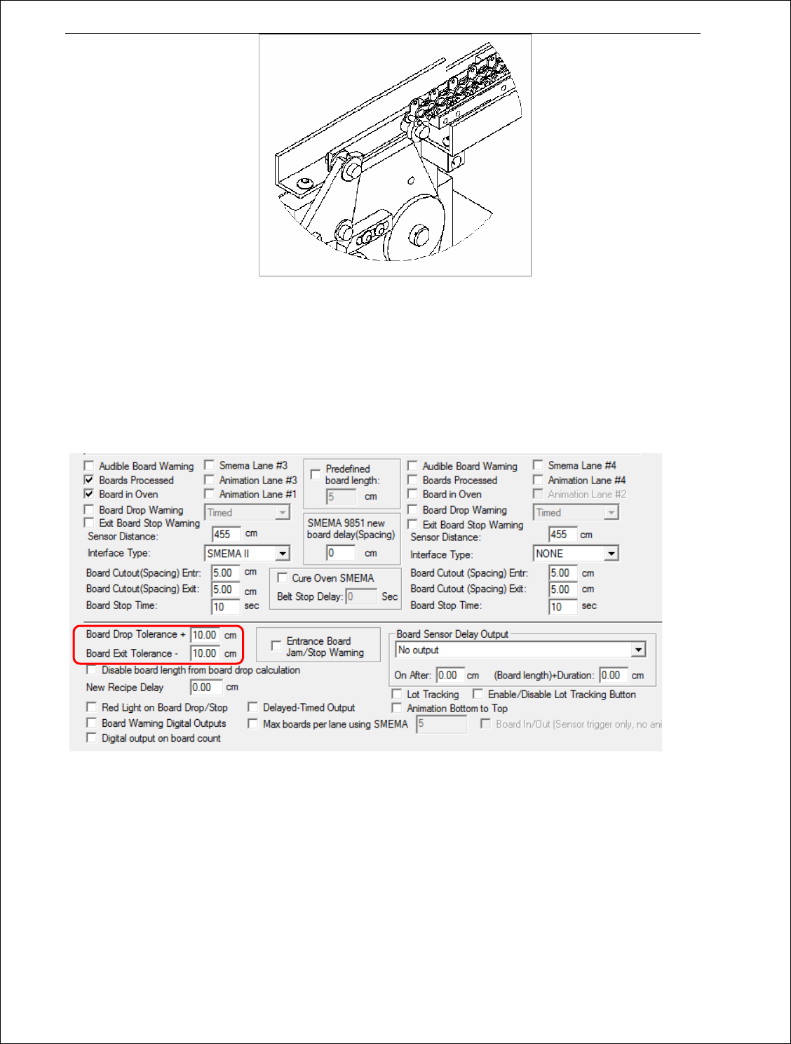 掉板:该选项将允许在回流工艺过程中,检查电路板是否从可调节轨道输送带上坠落,并发出警告