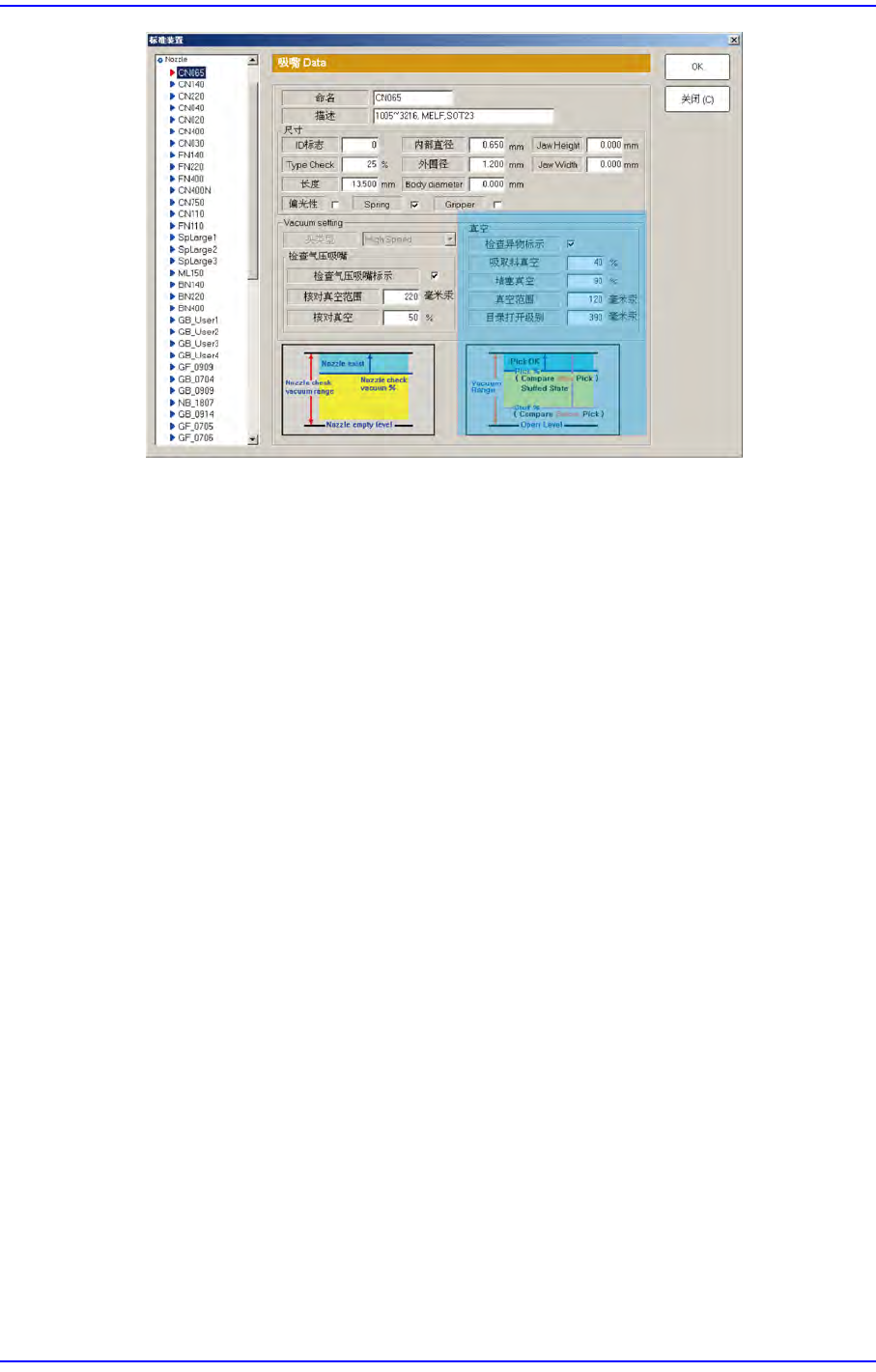 部品的数据上没有有关吸嘴的设定。