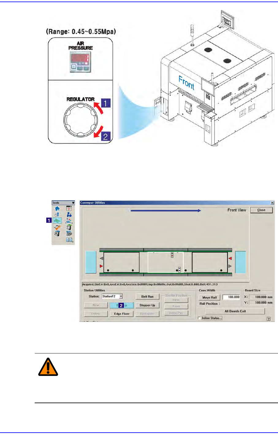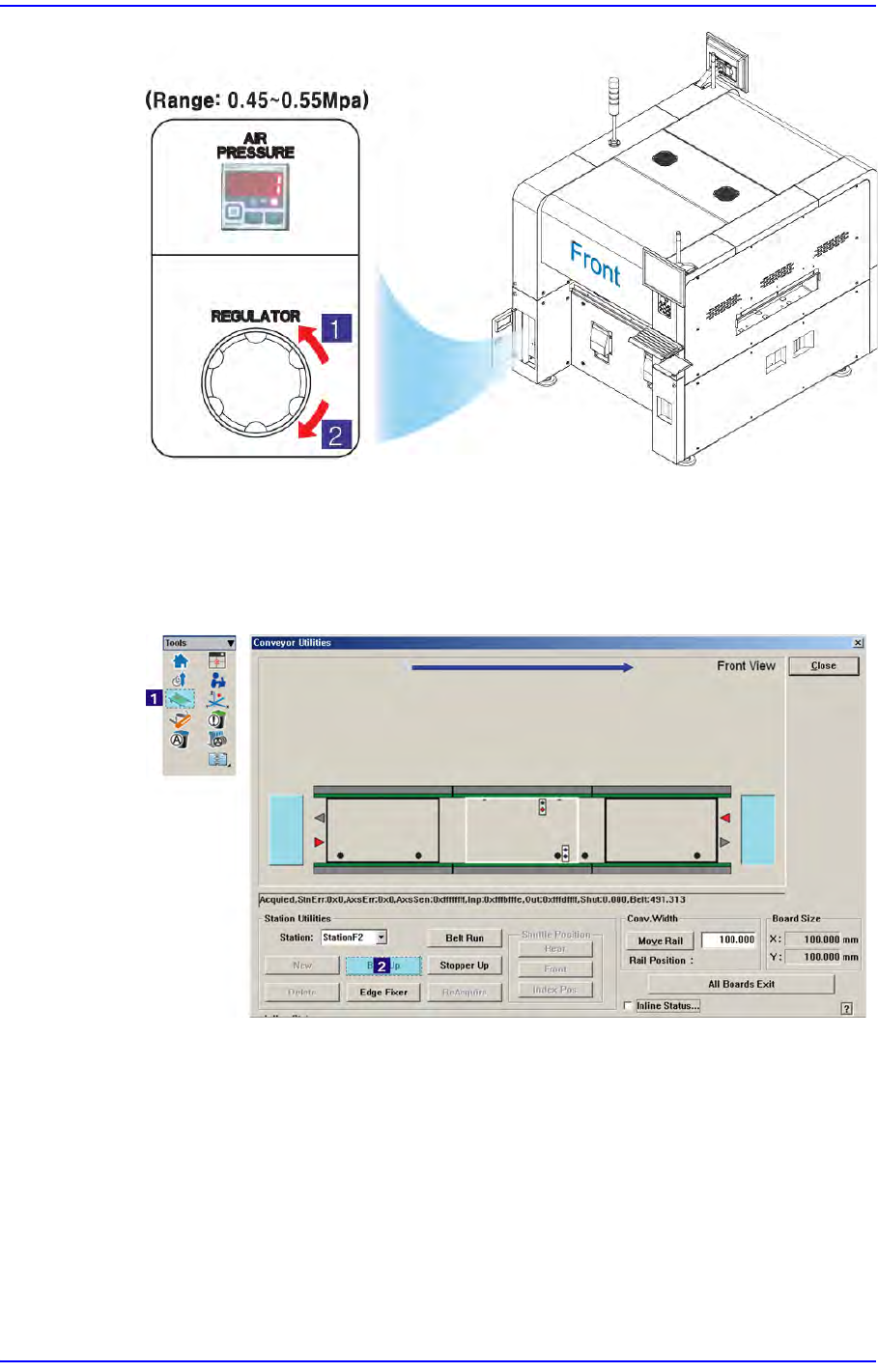 从全面的气压表(Air Pressure) 确认压缩气的供应是否正常 (0.45~0.55Mpa)。