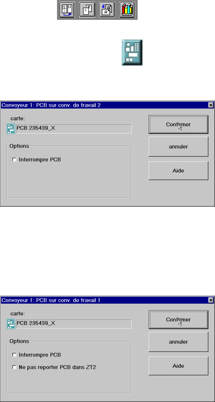 La boîte de dialogue suivante s’ouvre, lorsqu’un PCB se trouve sur le convoyeur de travail 2.