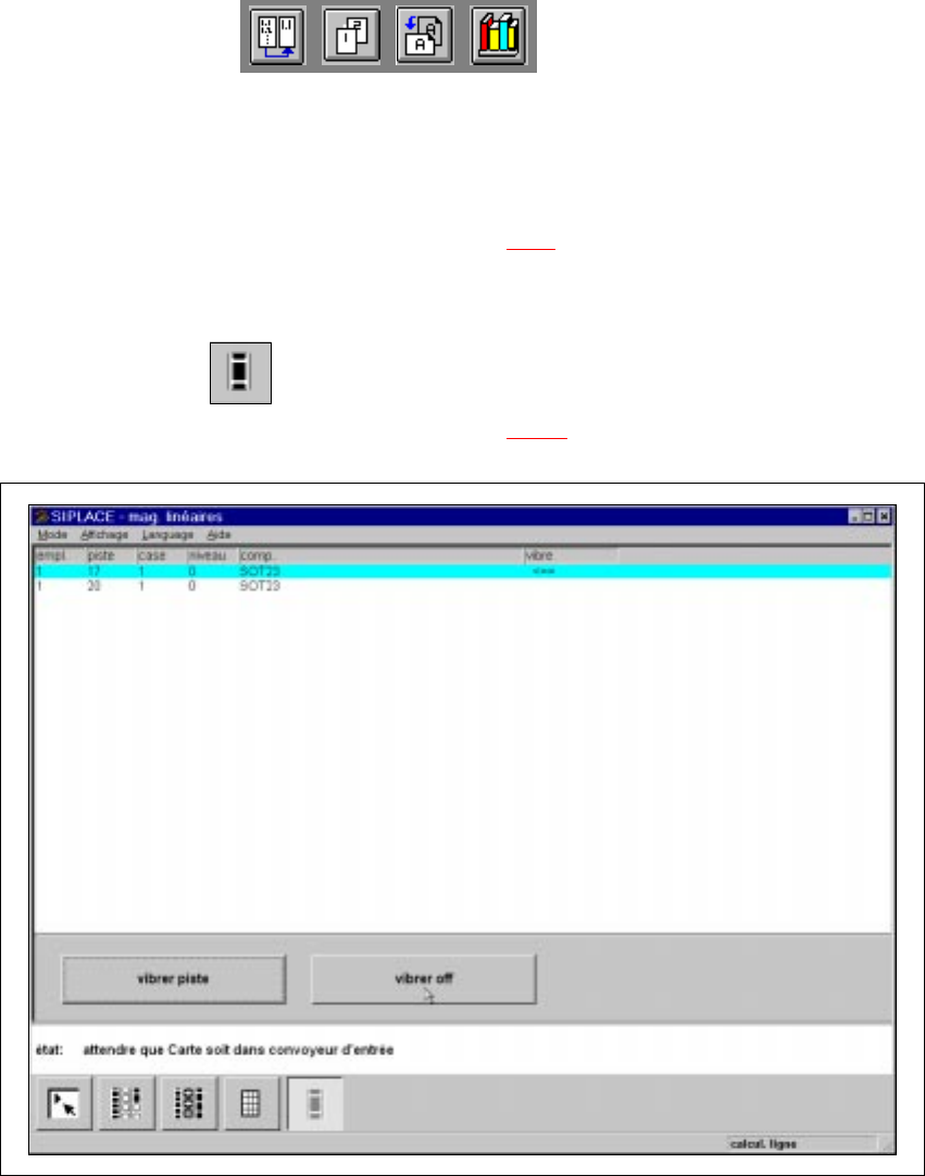 Manuel d’utilisation HS-50 4 Fonctions de report Version du logiciel SR.501.xx Edition 12/99 FR 4.3 Magasins 151 t I I t 4.3.3 Interface "magasins linéaires" Au co urs du r empl issage d e com posants d ans les…
