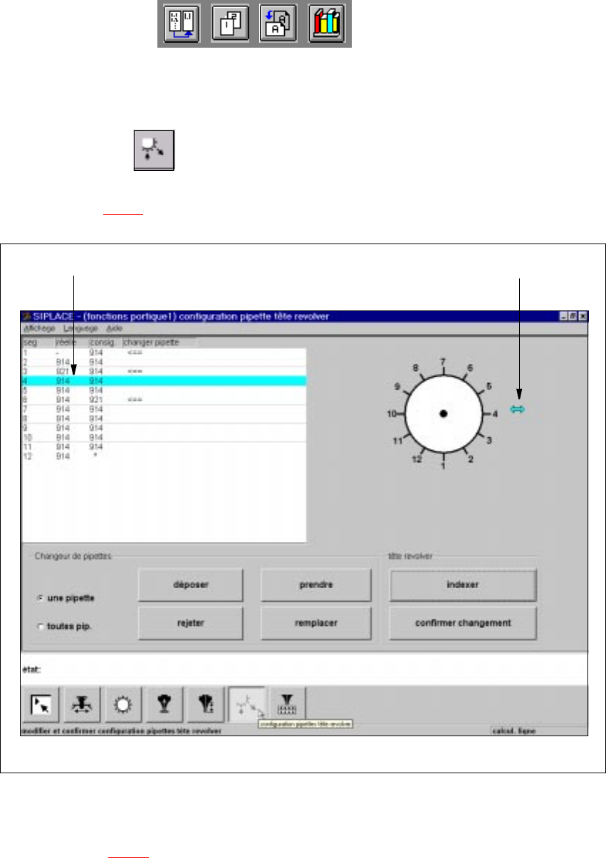 Les fonctions, permettant de modifier et de valider la configuration pipette de la tête revolver, sont