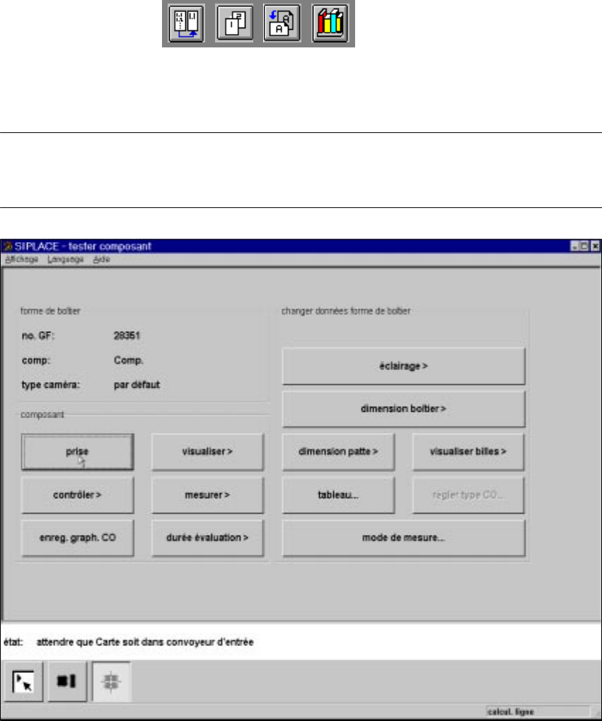 6 Fonctions du sys tème Vision Manuel d’utilisation HS-50 6.6 Tester composant Version du logiciel S R.501.xx Edition 12/99 FR 258 t I I t 6.6.4.1 Option "pri se" NOTE 6 Avant d’active r cette op tion, v eiller…