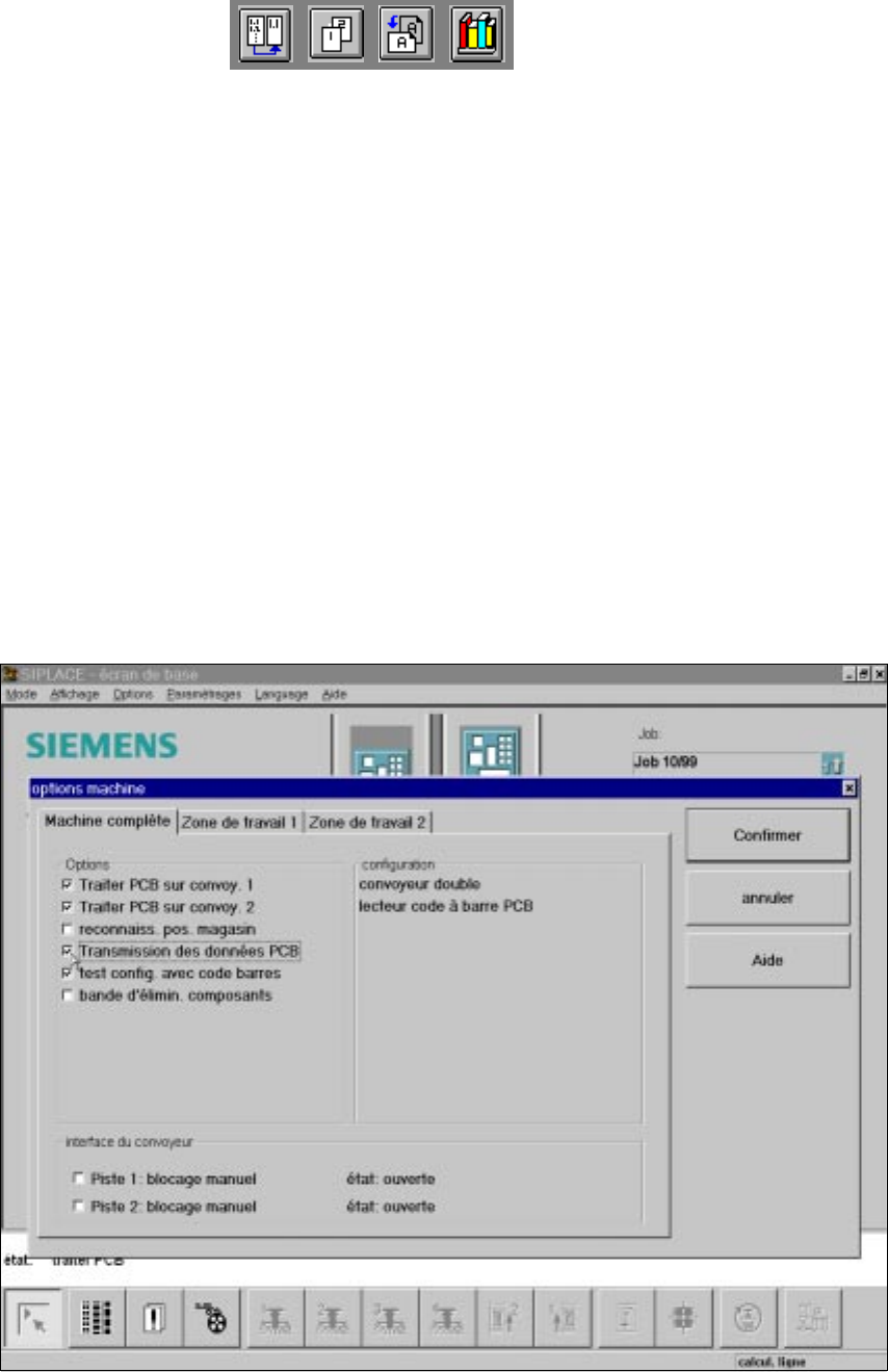 Le menu ’Options machine’ recèle l’option ’Transmission des données PCB’. Cette option a pour
