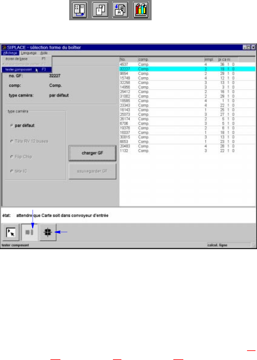 Il est possible de sélectionner, depuis l’option "Tester composant" les menus suivants, soit en cli-