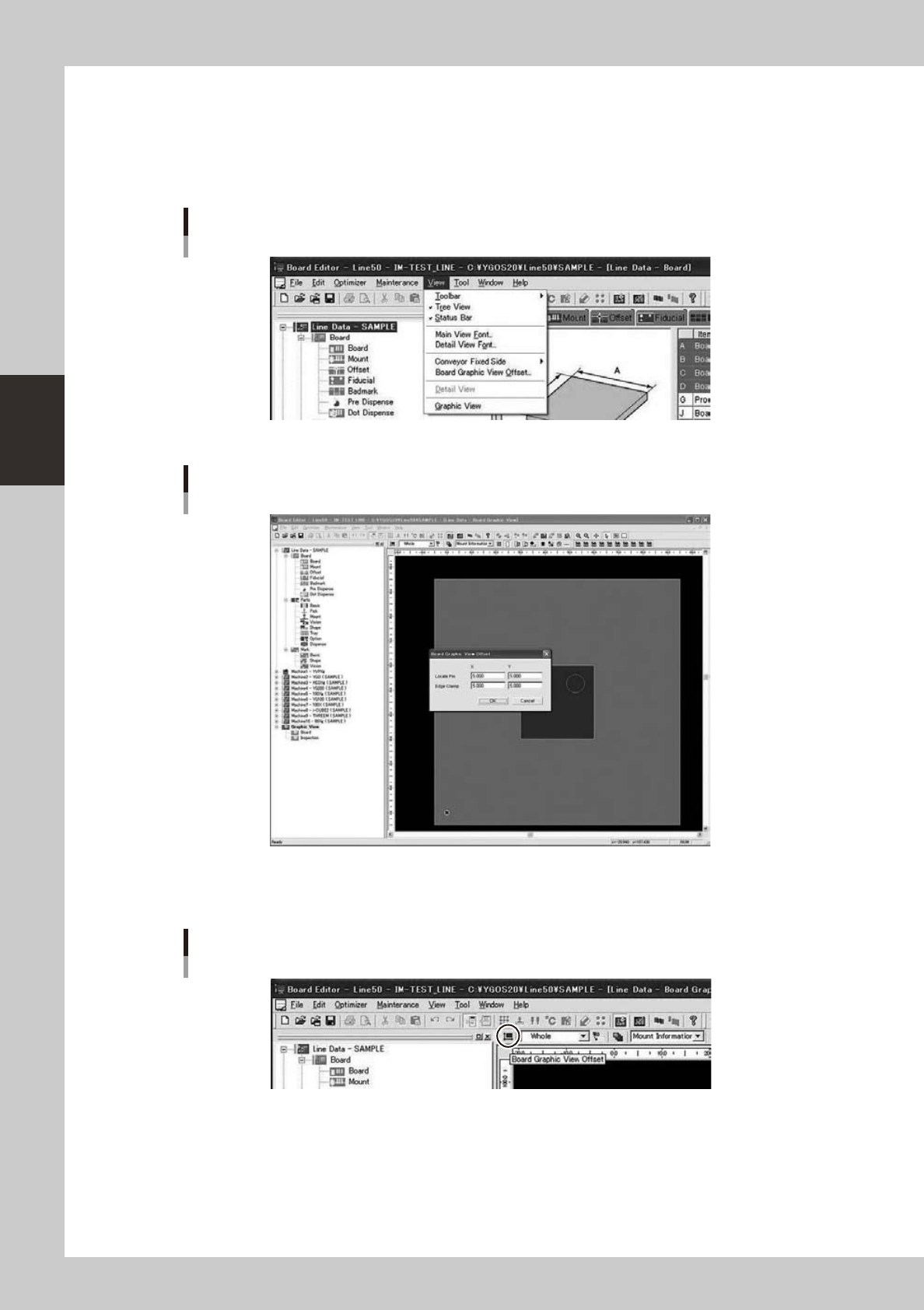 3-48 3 Board Editor n Change Offset V alue To change the offset value, it operates it as follows. n Display Board Graphic View Offset dialog Select“View”-“BoardGraphicViewOffset”menu,andthentheBoardGraphicVi…