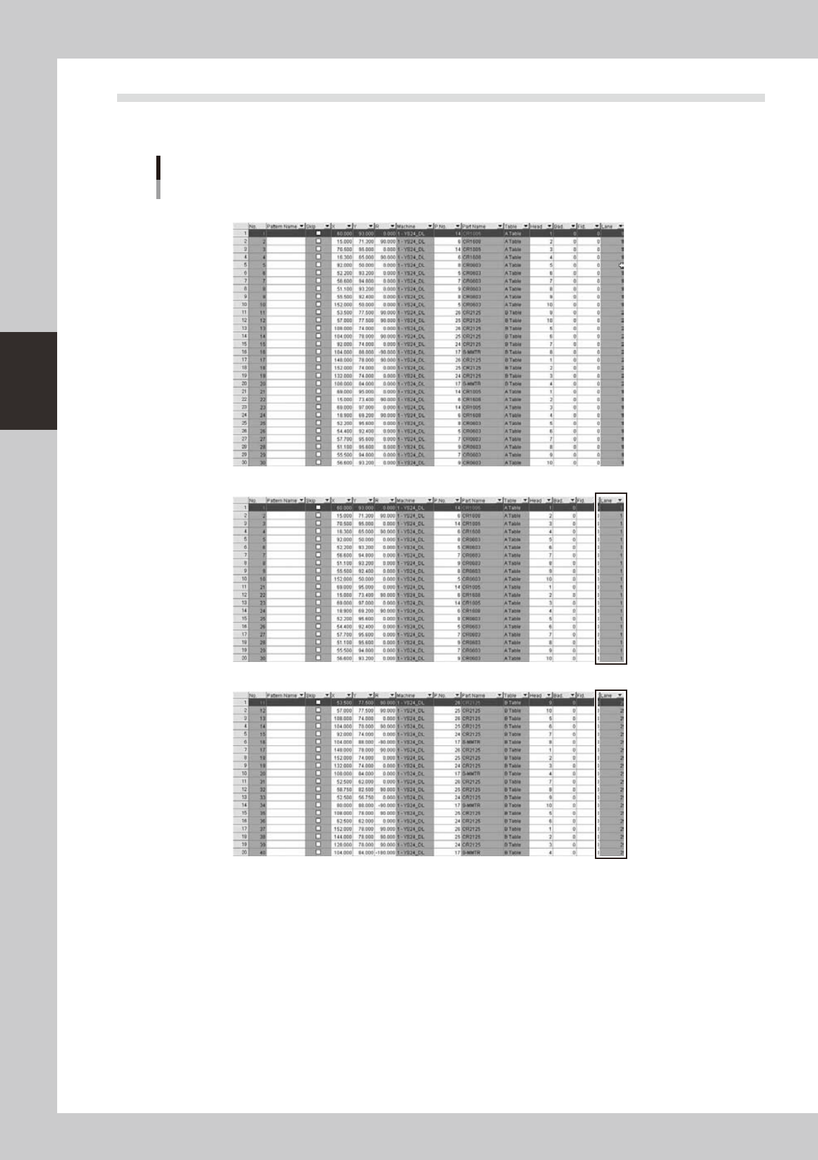3-53 3 Board Editor 4.4 Edit single combined program On single combined program, mount information of each lane is same because each lane mounts on same board. So mount information of all lane are changed if its of one l…