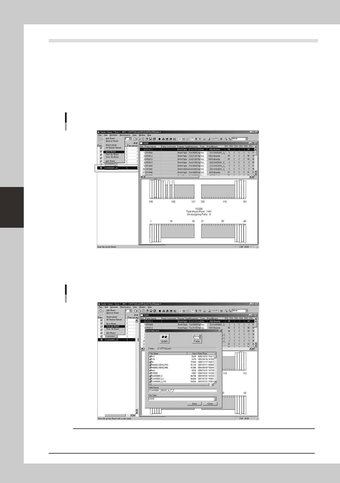 board data on Board Editor. The edited board data will be reflected on the Feeder Viewer.