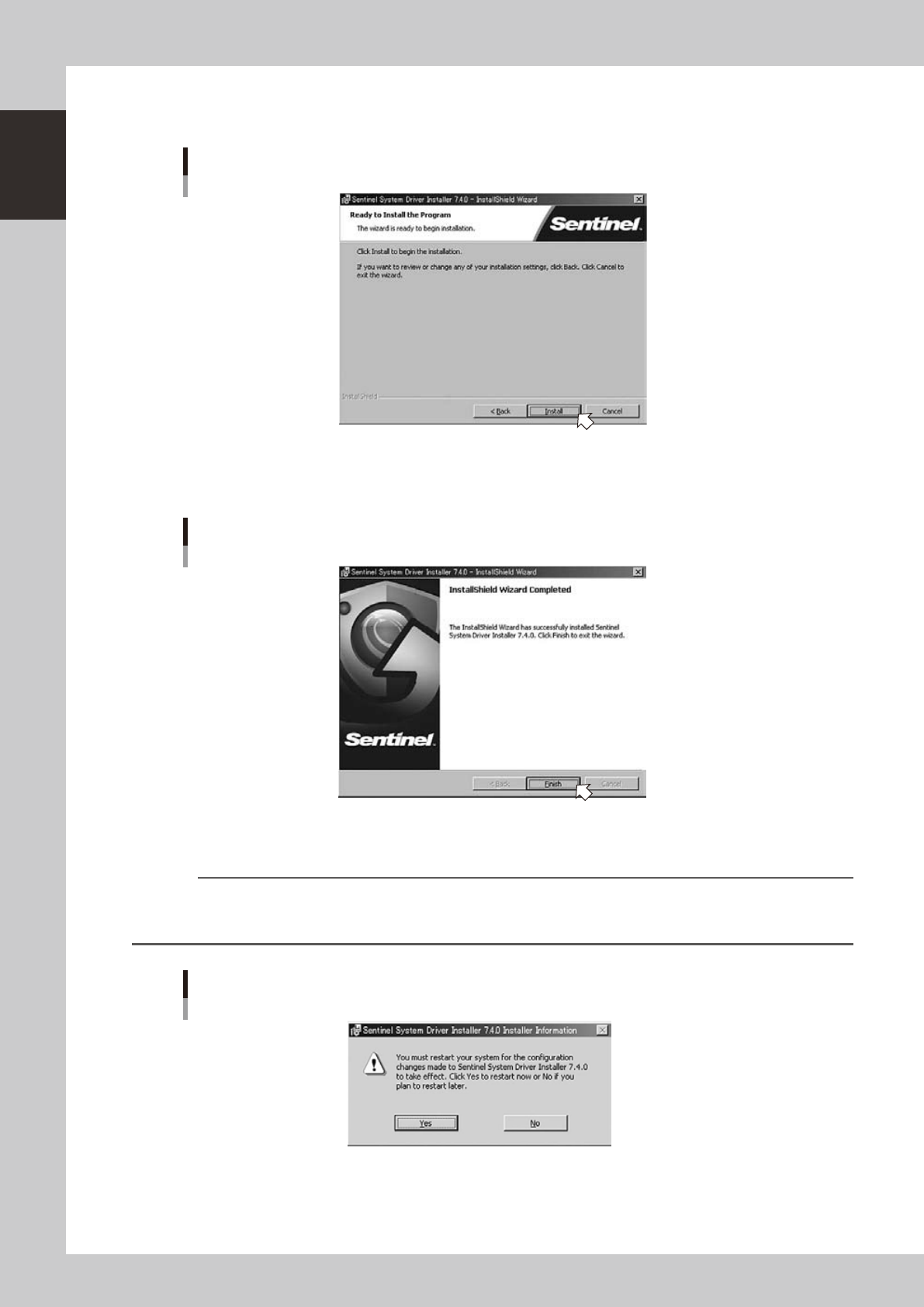 “Sentinl System Driver Installar Information” dialog box