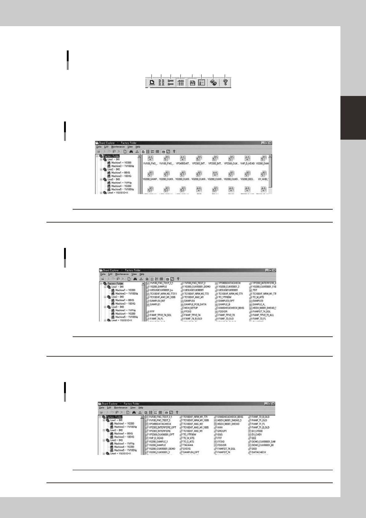 2-10 2 Board Explorer 4. [Detail View] button Shows a list of data with detailed information in the main view. The detailed information includes data size, data type, update date and comment. Detail display in the main v…