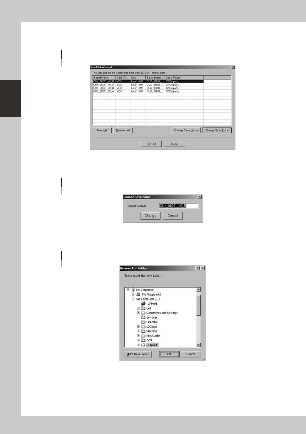 Sets up a setting for converting board data to the Inspection program with the board explorer.