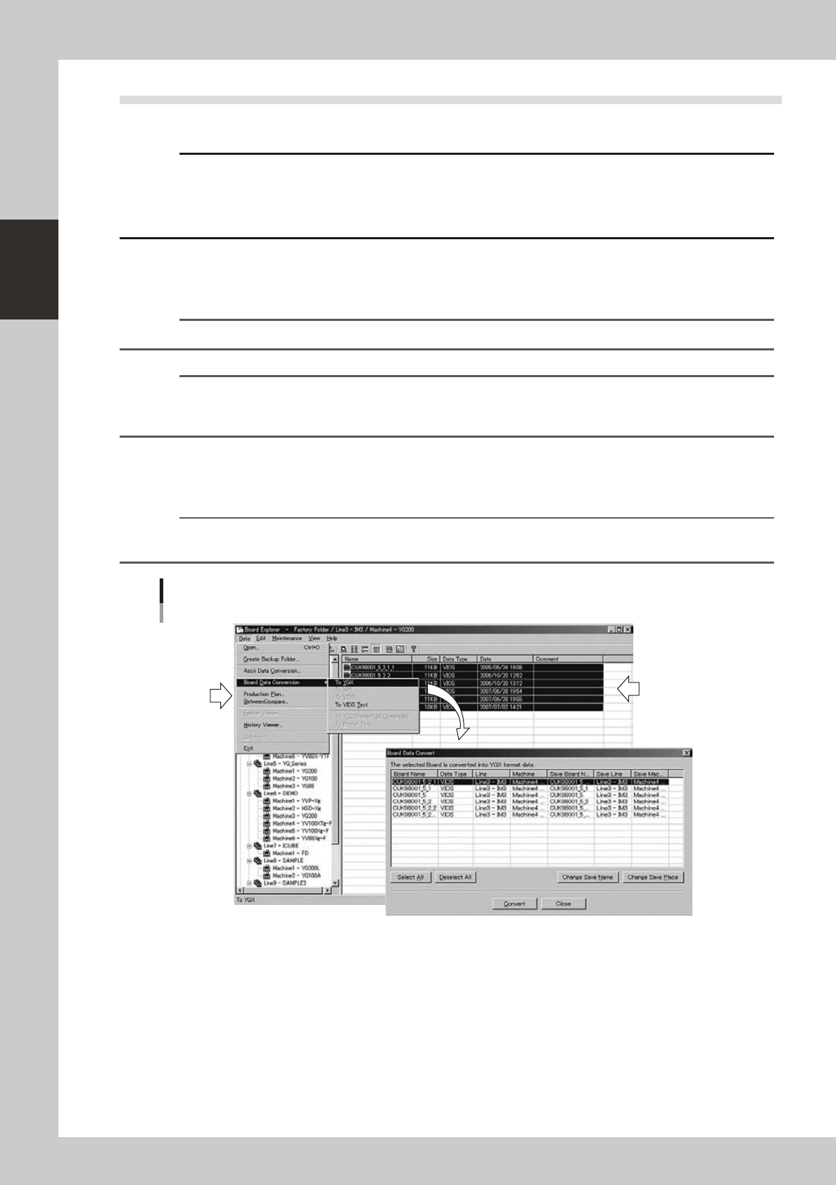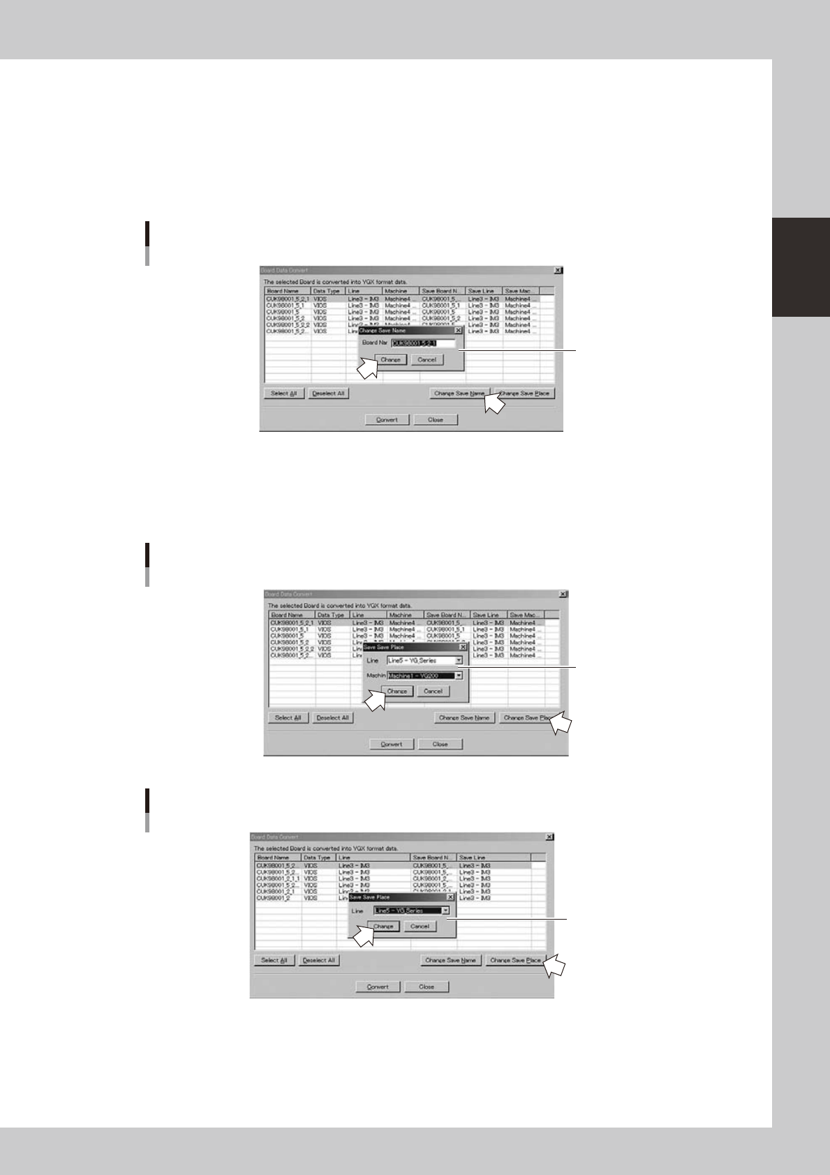 2-49 2 Board Explorer 3 In the “Board Data C onvert” window , select the board data the data type. Y ou can select multiple items of board data. 4 Check the Board name in the “Sav e Board Name” column. When y ou want to …