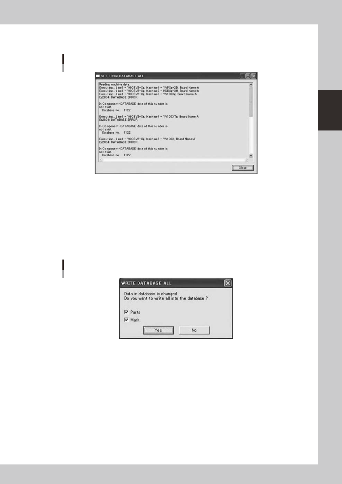 When you click “Copy Back to Database All” button on the Database Utility window, a confirmation dialog is