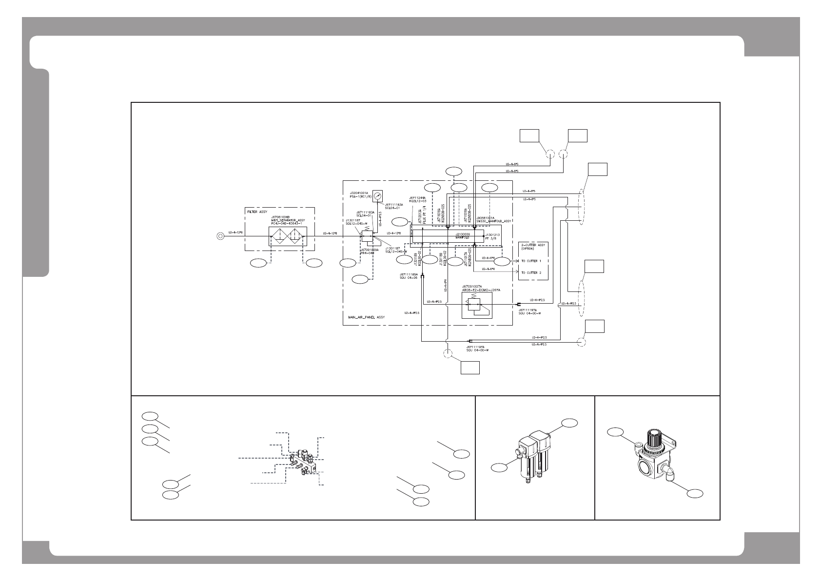 Page HANWHA TECHWIN 71 SLM120/110 Air Ass’y (2/6) 10 10 11 11 3 1 2 5 2 5 10 10 11 11 1 9 8 3 6 4 7 Right Gantry Air Module Left Gantry Air Module Main Regulator Head Regulator Feeder Base Cutter-2 (Option) Cutter-1 (Opt…