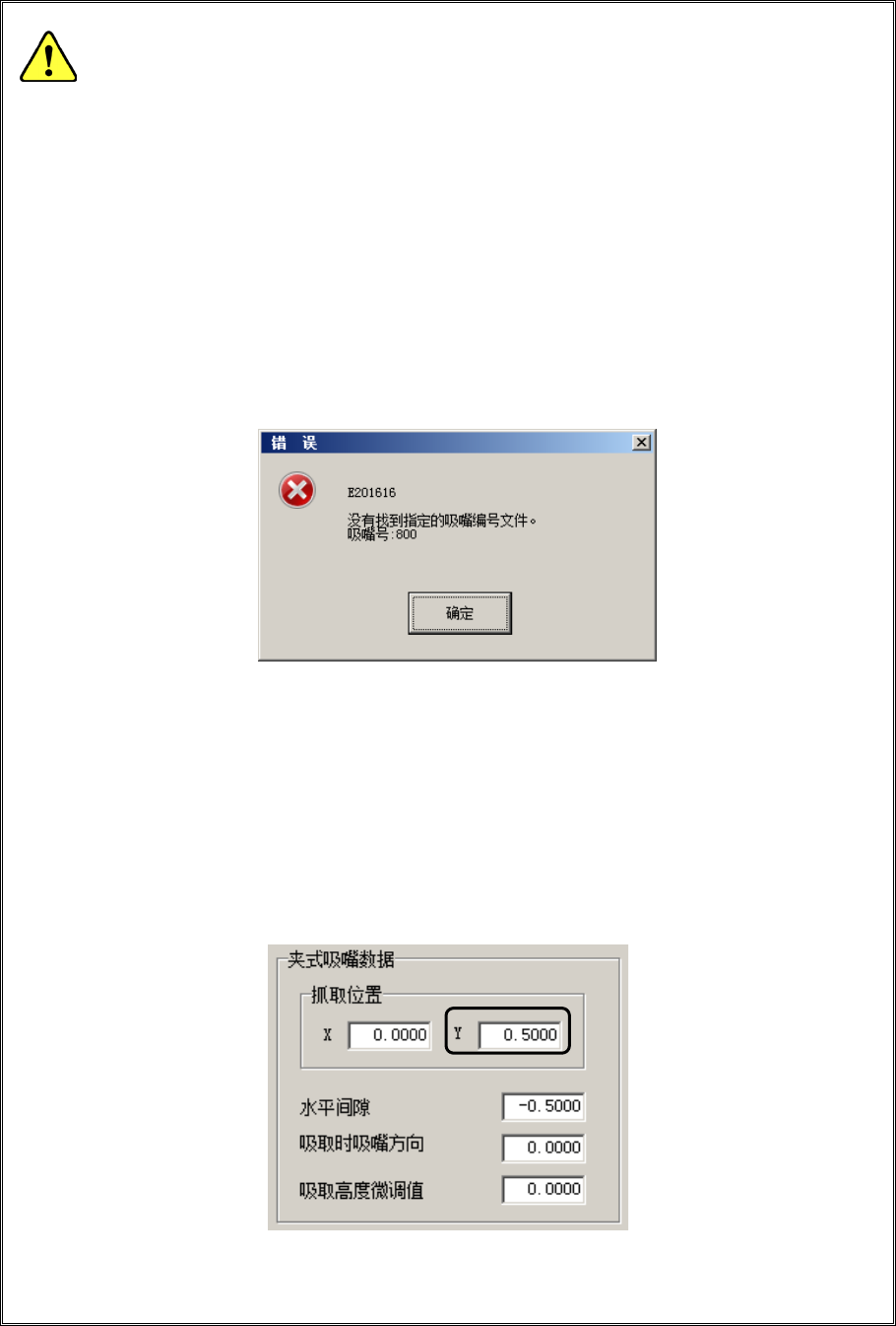 如果在指定位置没有输入吸嘴编号的吸嘴文件,显示以下错误,不能进行设置。但即使指