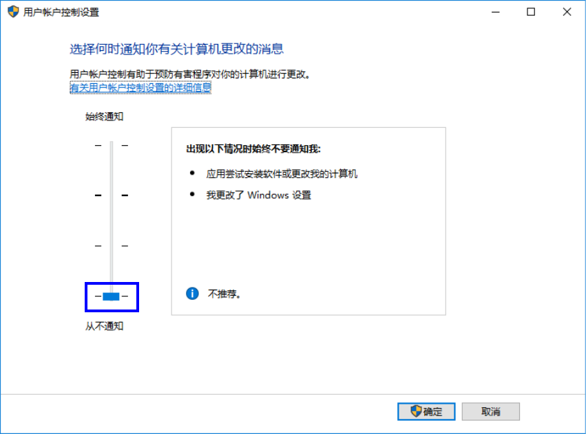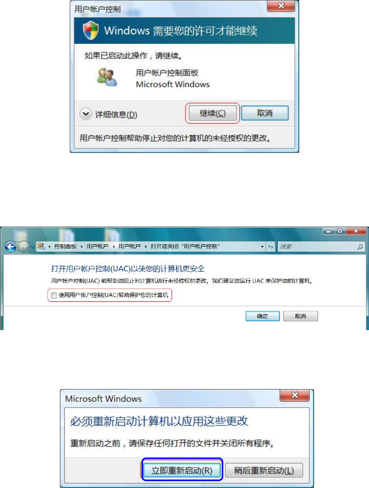 ⑤ 全部软件安装完成后请将“用户帐户控制(UAC)”重新设置为有效状态。