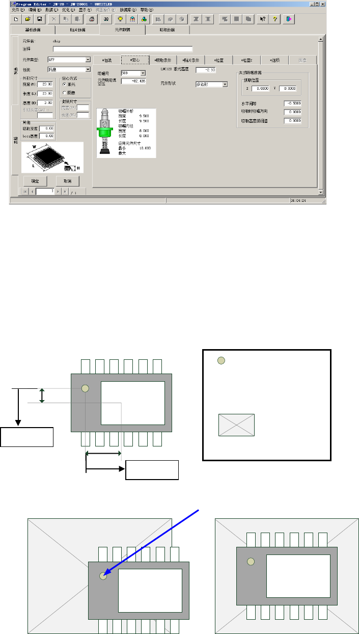 以夹紧部中心示教XY。由于Z是利用机器设置中已注册的吸嘴信息与元件高度自动计算的,