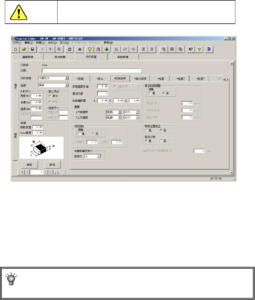 使用轴向供料器时,吸取高度补偿切勿输入正值。