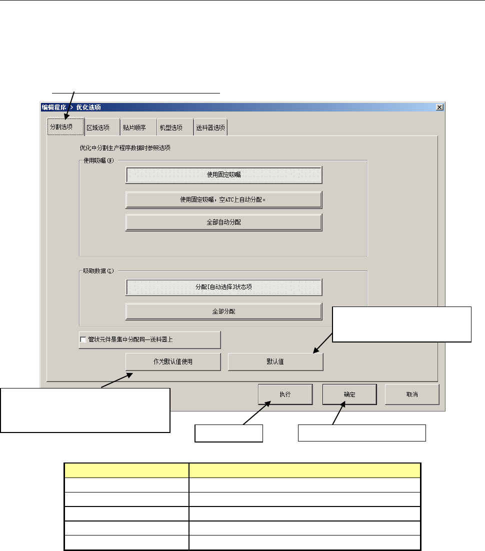 设置分配吸嘴及吸取数据时的优化参照选项。