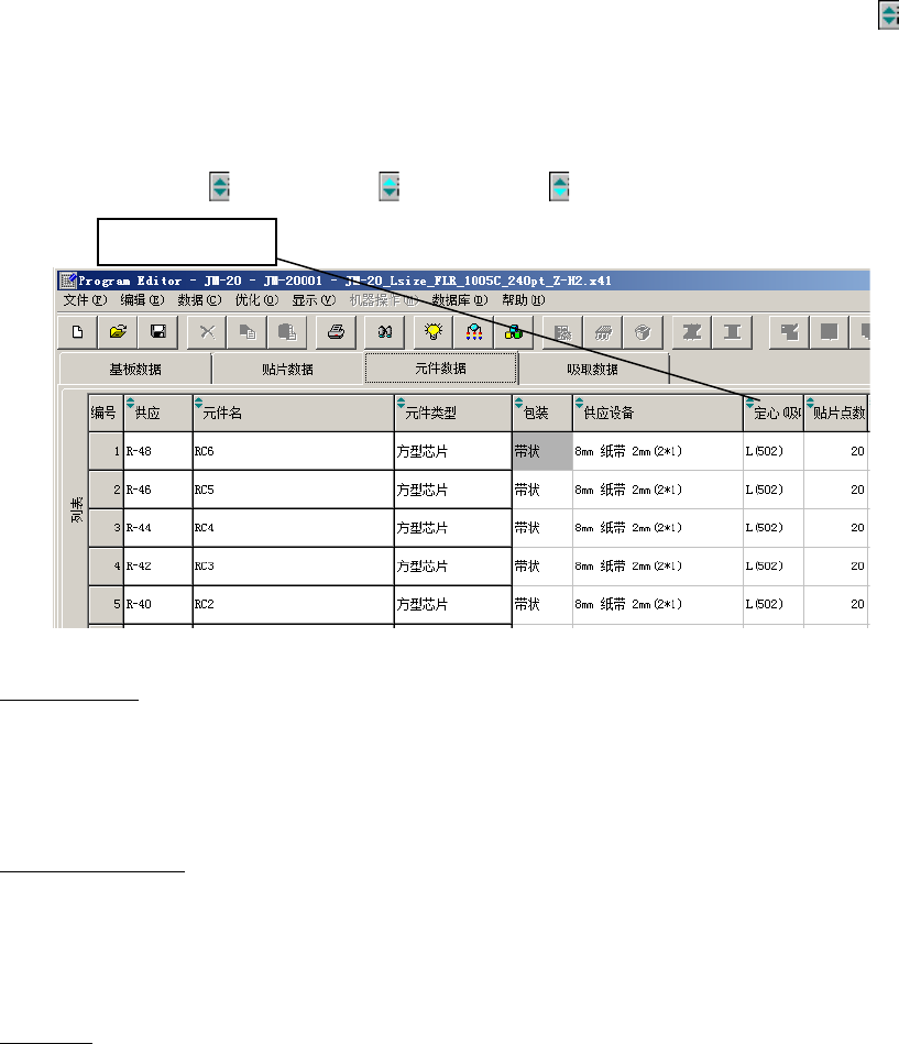 元件名称、包装状态、供给设备、供给(号码)均可作为排序关键字,使之显示出排序数据。