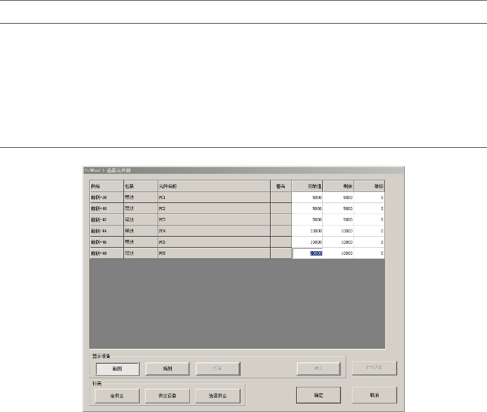 显示参见元件数时的元件剩余数。生产时每吸取一件元件,则从剩