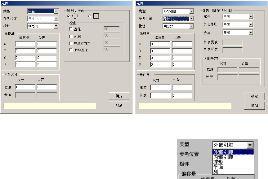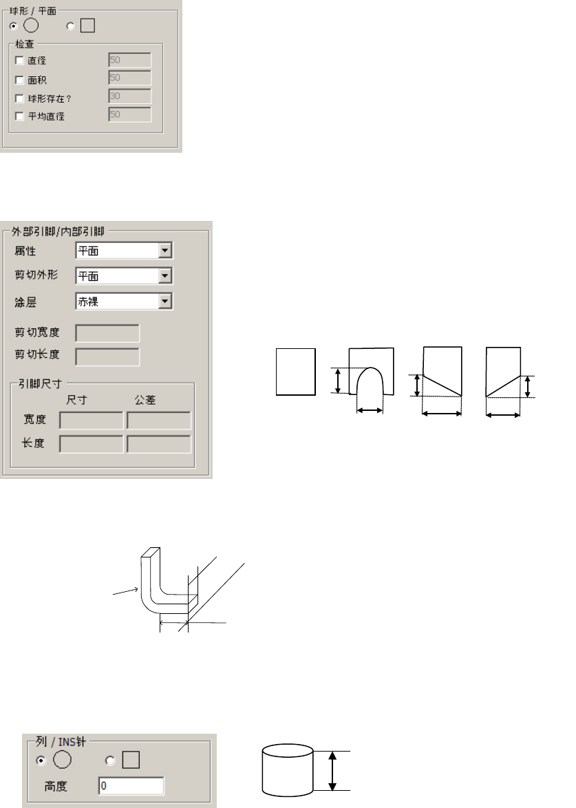 ·选择了球或平面时的画面 ·选择了外引脚或内引脚时的画面