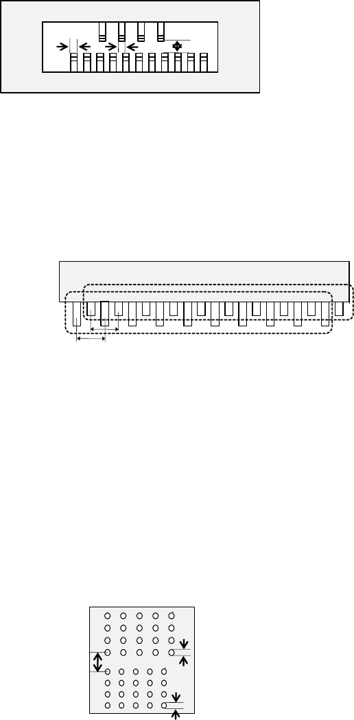 高度差处于间距的 0.5 倍以内)有引脚组相邻近时,邻接引脚的中心必须处在离开各引脚间距 2