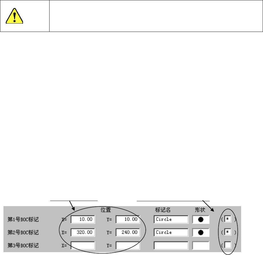输入由基板位置基准(原点)到各 BOC 标记的中心位置的尺寸,设置标记名并进行标记形状的