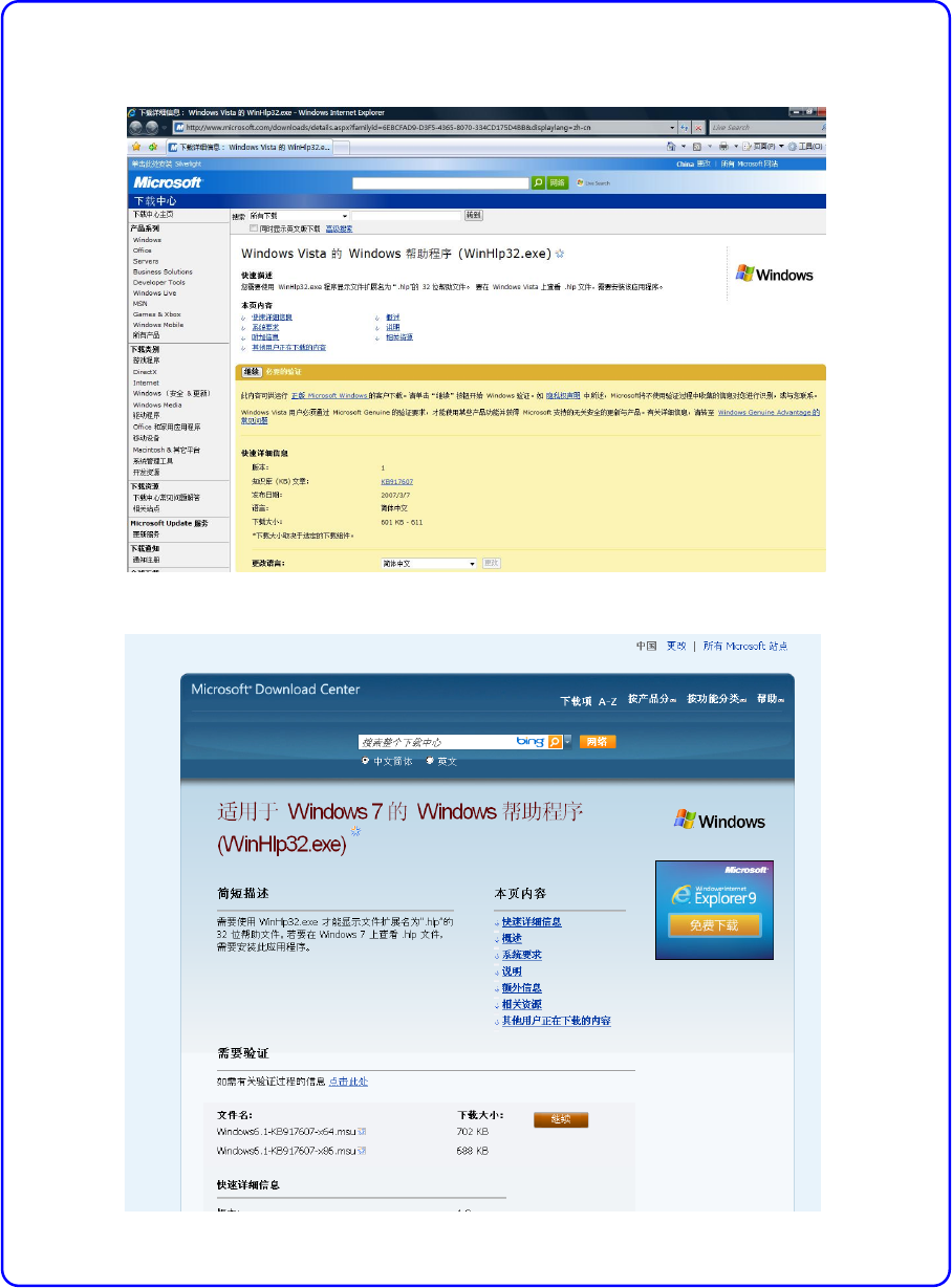 使用Windows Vista / Windows 7时,为了启用应用程序的帮助功能,需要以下文件。