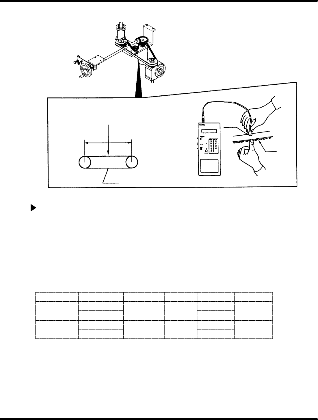 5. Read the measured value. If the value is out of the tolerance, adjust the belt tension for measurement.