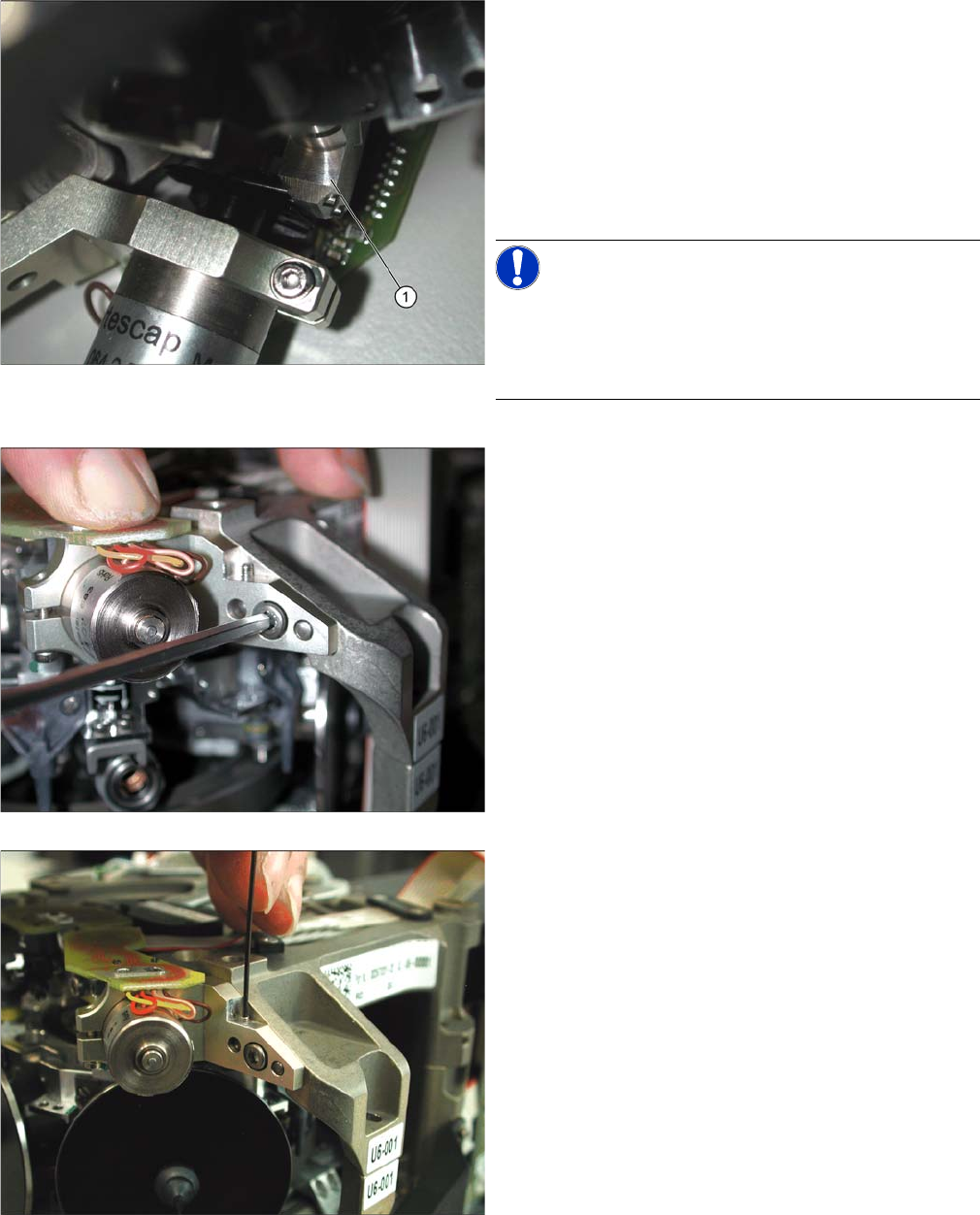Servicearbeiten 4.4.9 Ventilstellantrieb Abwurfkreis tauschen [00367768-xx] (b i s DLM3) C&P6/12-Kopf Serviceanleitung SIPLACE D1/D1i/D2/D2i 137 ► Drehen Sie die Kurvenscheibe mit e inem spitzen Ge - genstand vorsich…
