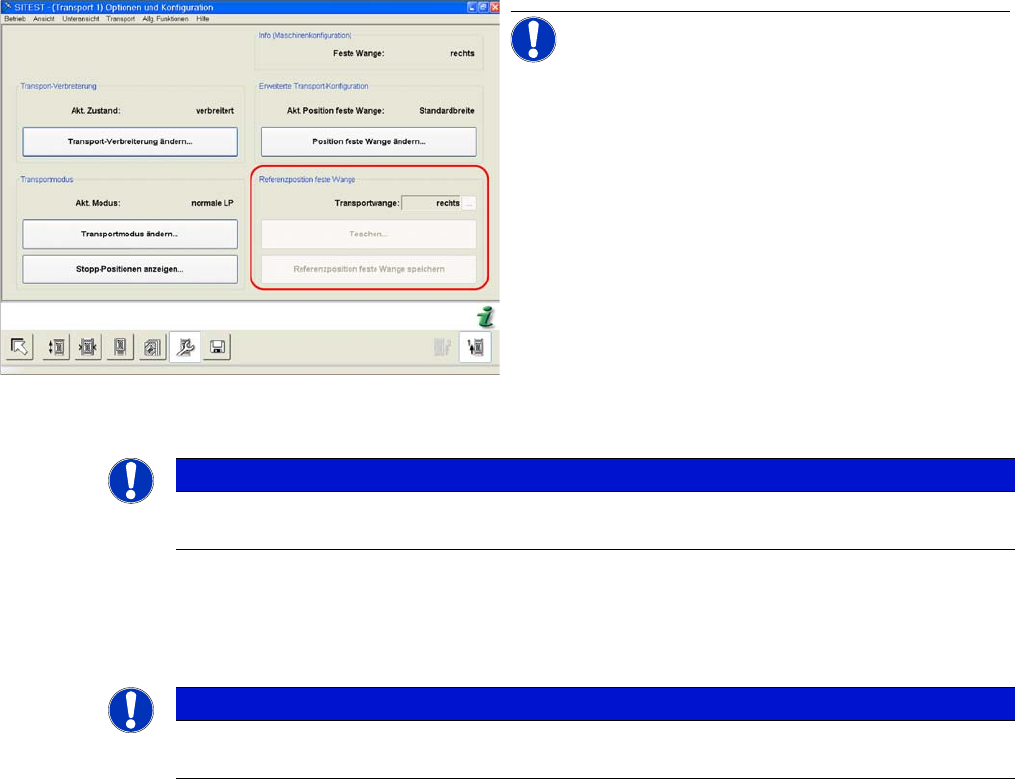 Die feste Transportseite darf nur per SITEST-Software und mit den Breitenverstellern
