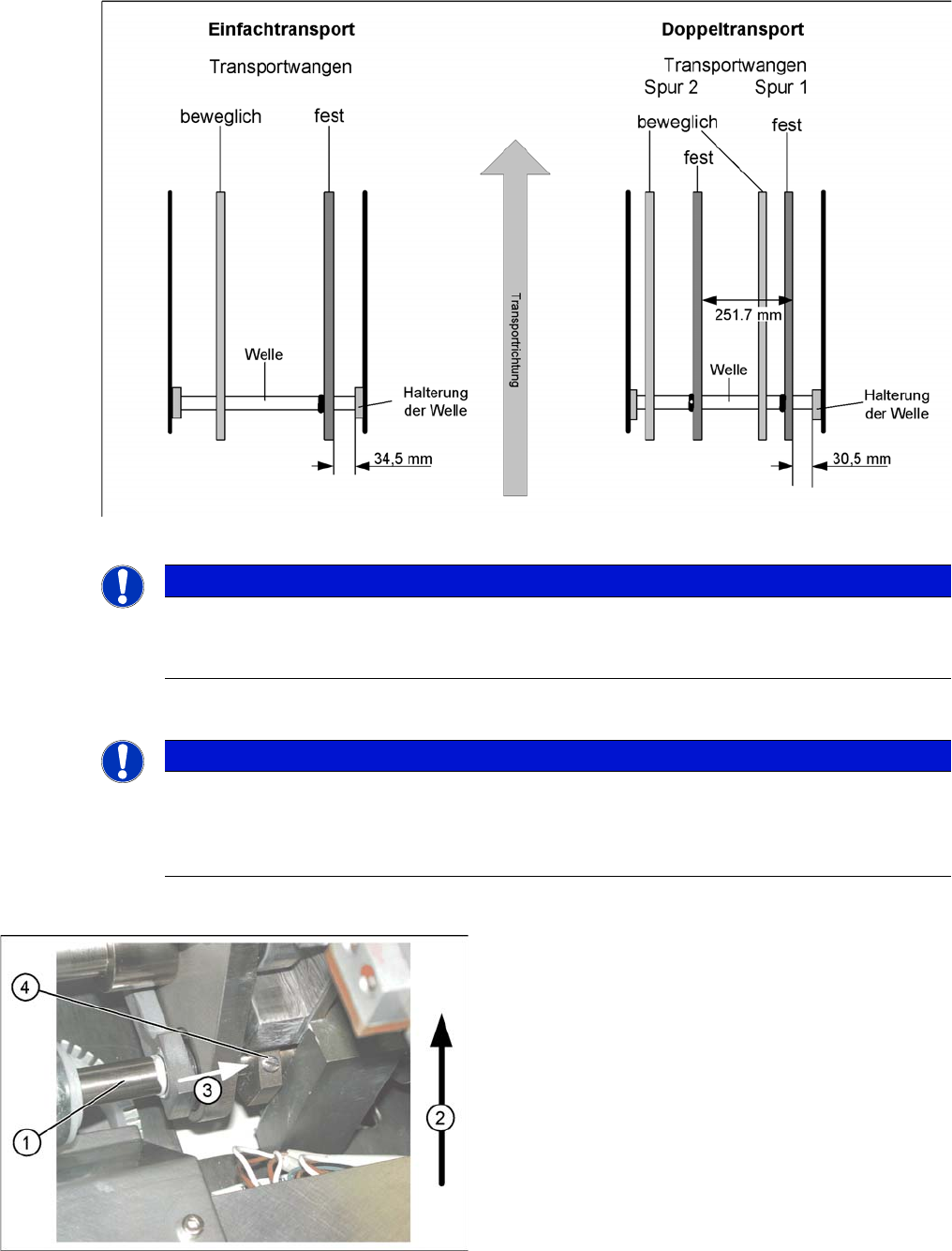 6.7.2 Feste Transportwange einstellen (Einfach- und Doppeltransport)
