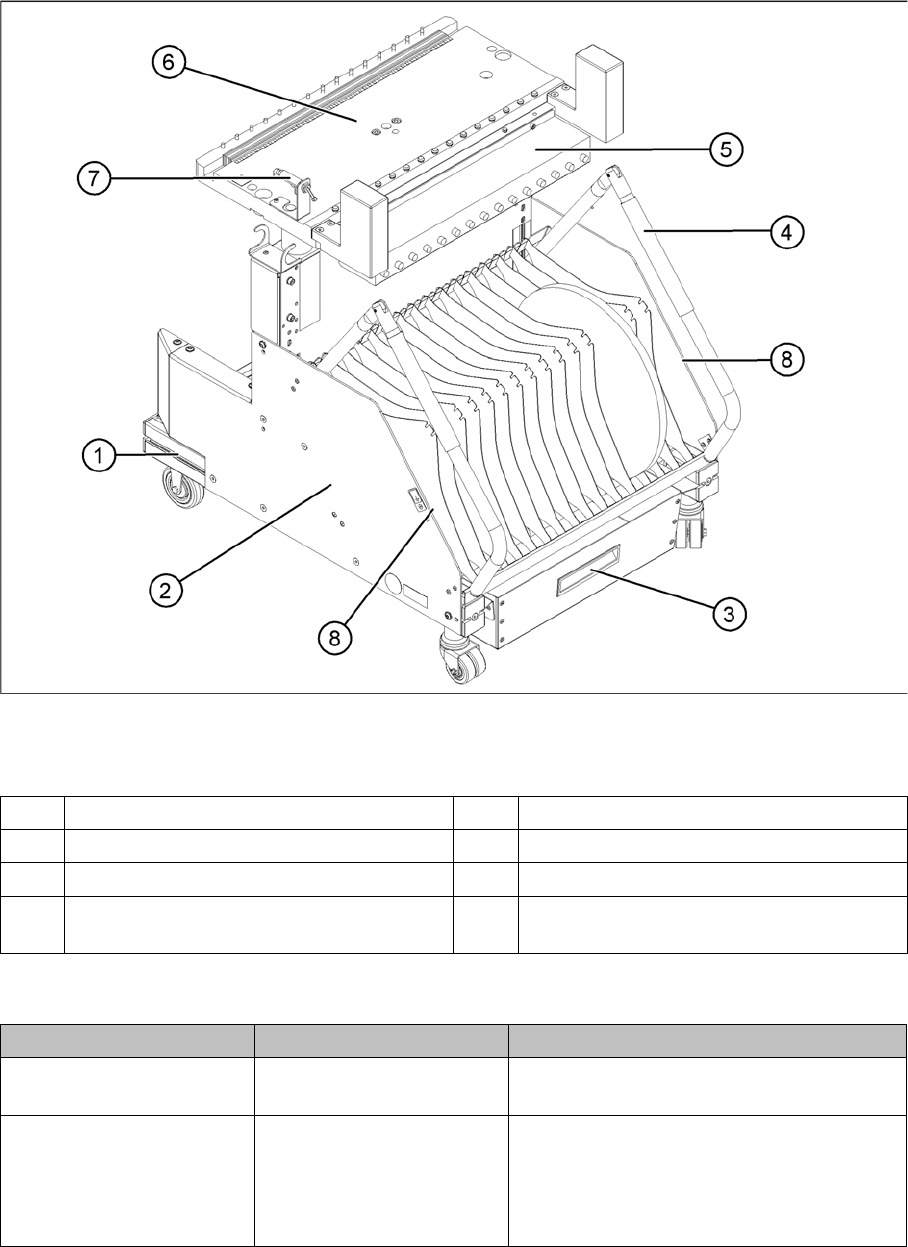 1 Fahrgestell mit Bock- und Lenkrolle 5 Kommunikationseinheit