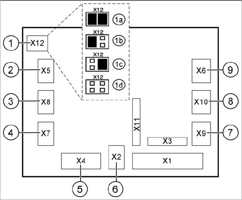 1. X12 – Jumper für Stellplatzcodierung Schneidgerät: