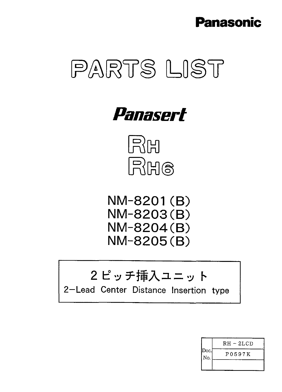 Panasonic Panasert 同 K ] 同 NM - 8201 ( B ) NM - 8203 CB ) NM - 8204 ( B ) NM - 8205 ( B ) 2 h ° 于揷入二二 、 : ; 卜 2 - Lead Center Distance Insertion type RH - 2 LCD P 0 5 9 7 K