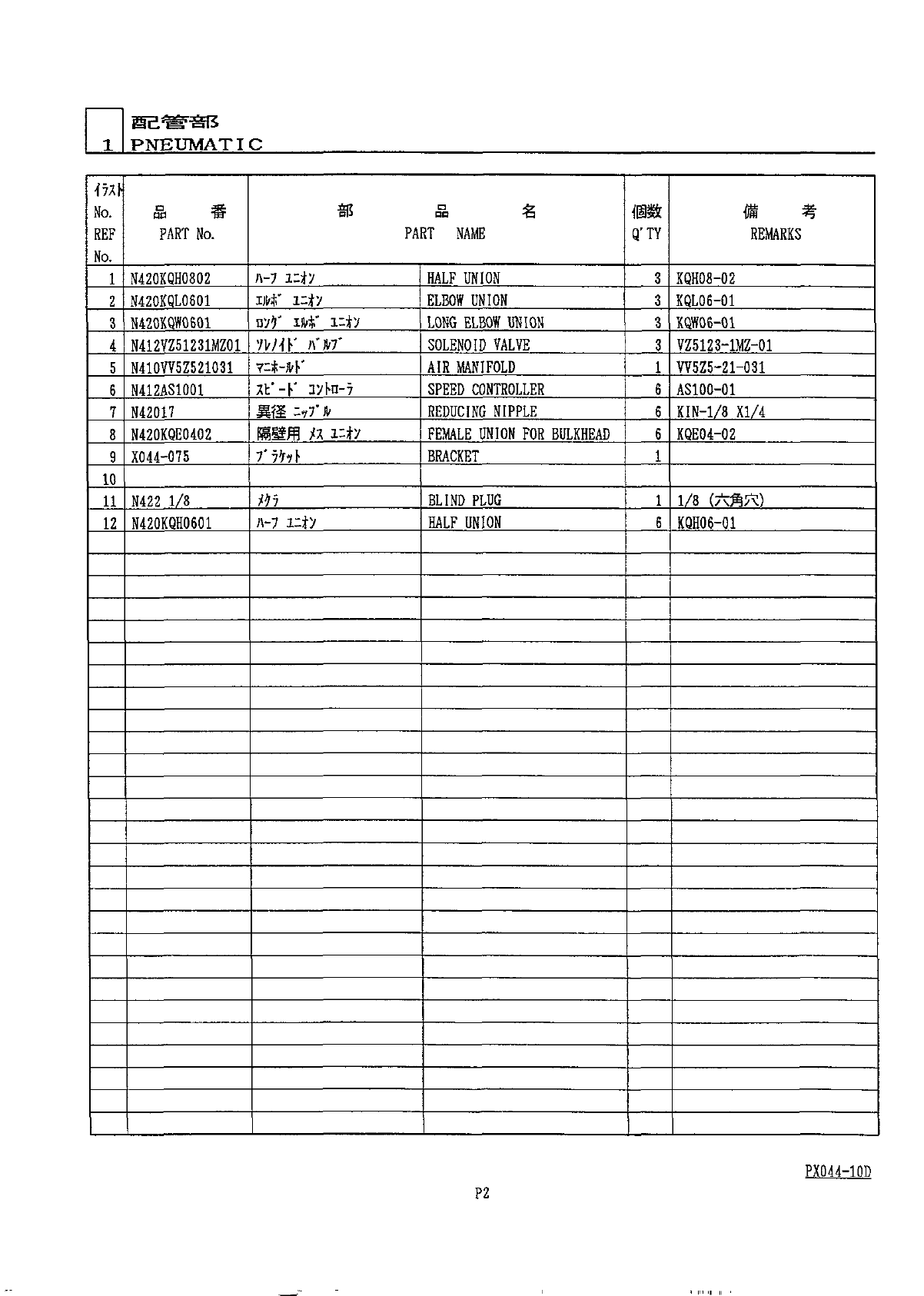 配管部 1 P N E U M A T IC PXQU - 1 QD