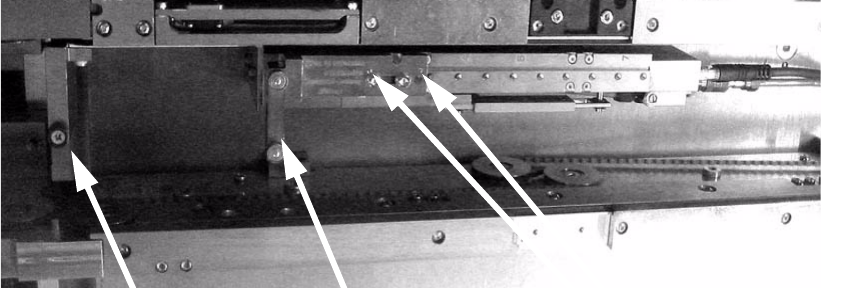 Nachrüstanleitung SIPLACE HS-60 1.7 Anpassung an die Substr atgröße Ausgabe 12/2004 26 : Lösen Sie die Befestigung des Anschlags (= Anschlageinhei t) an der X-Schlitteneinheit (2 In- nensechskant schrauben M3, siehe Fig.…