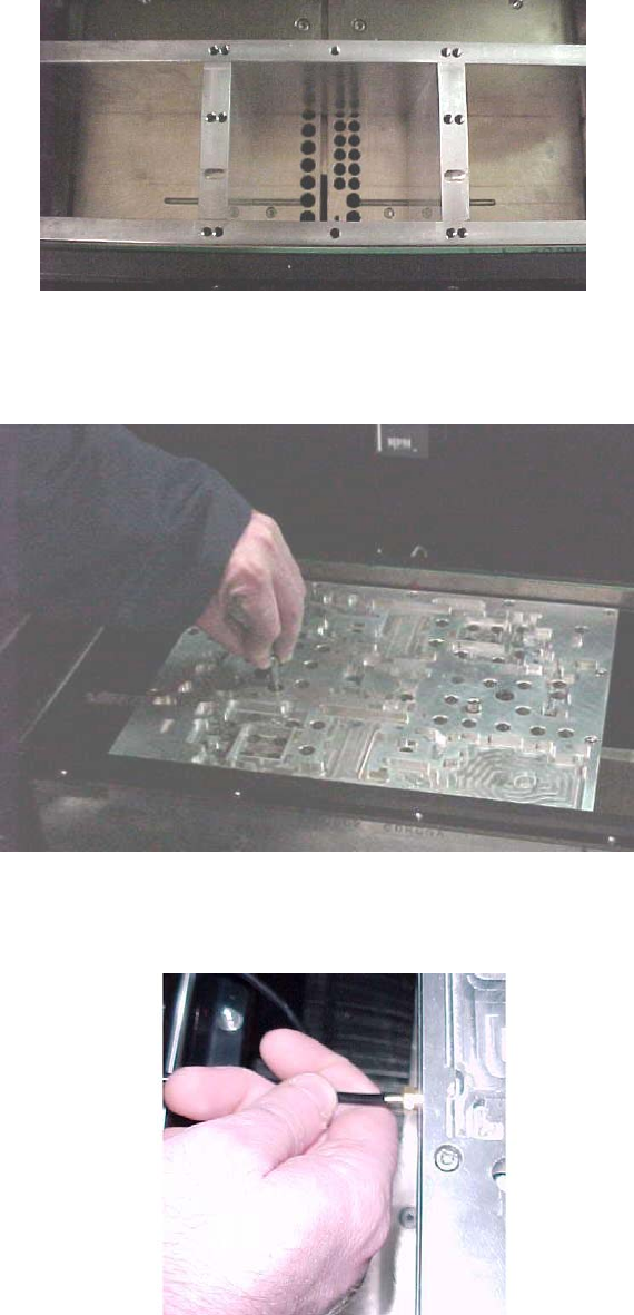 5-HR90-7000-011 Page 24 of 51 12. 印刷机設置 • 現在机器將為 PCB 外形設置 . • 這時你能看寬度改變的過程 . • 當机器完成 PCB 設置時打開蓋子 . • 獲得正确的真空板 . 正确真空板的細節被列在產品參數頁 parameter sheet . • 放置真空板在 H 型架上直到螺絲孔對准 . • 對准之后 , 用螺絲上緊真空板在 H 型架上 . 這時務必小心 , 不可太用力擰螺絲 , 以免…
