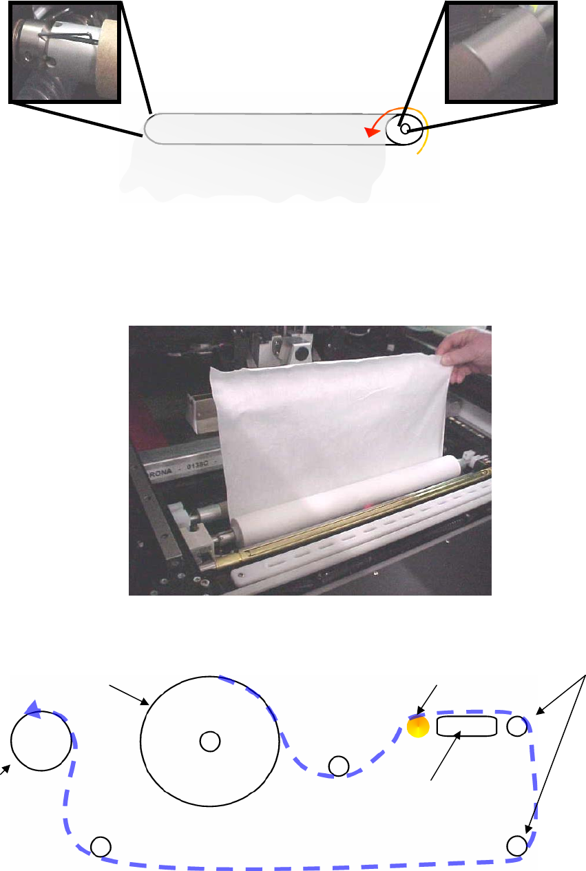• 拉擦机紙向上到新紙卷后面.